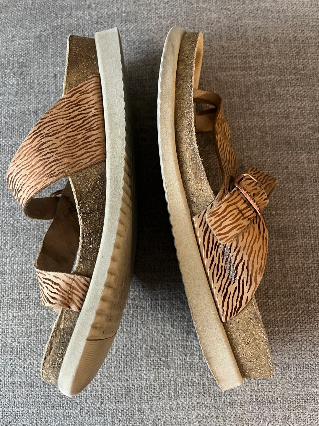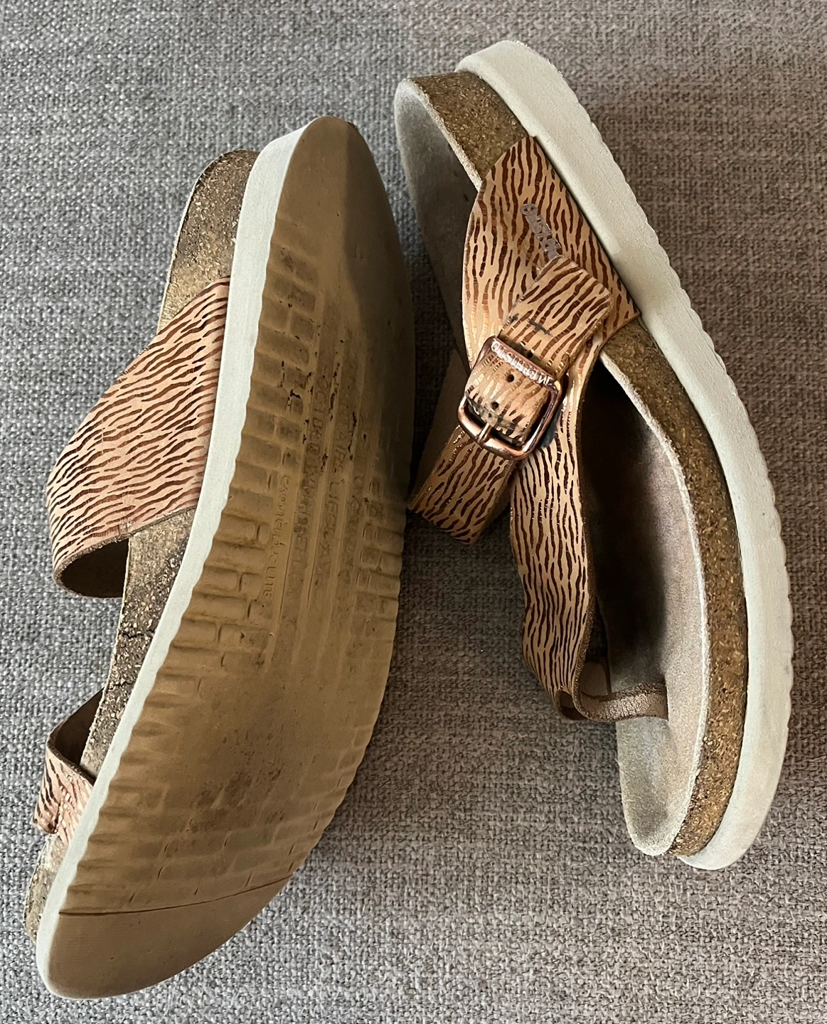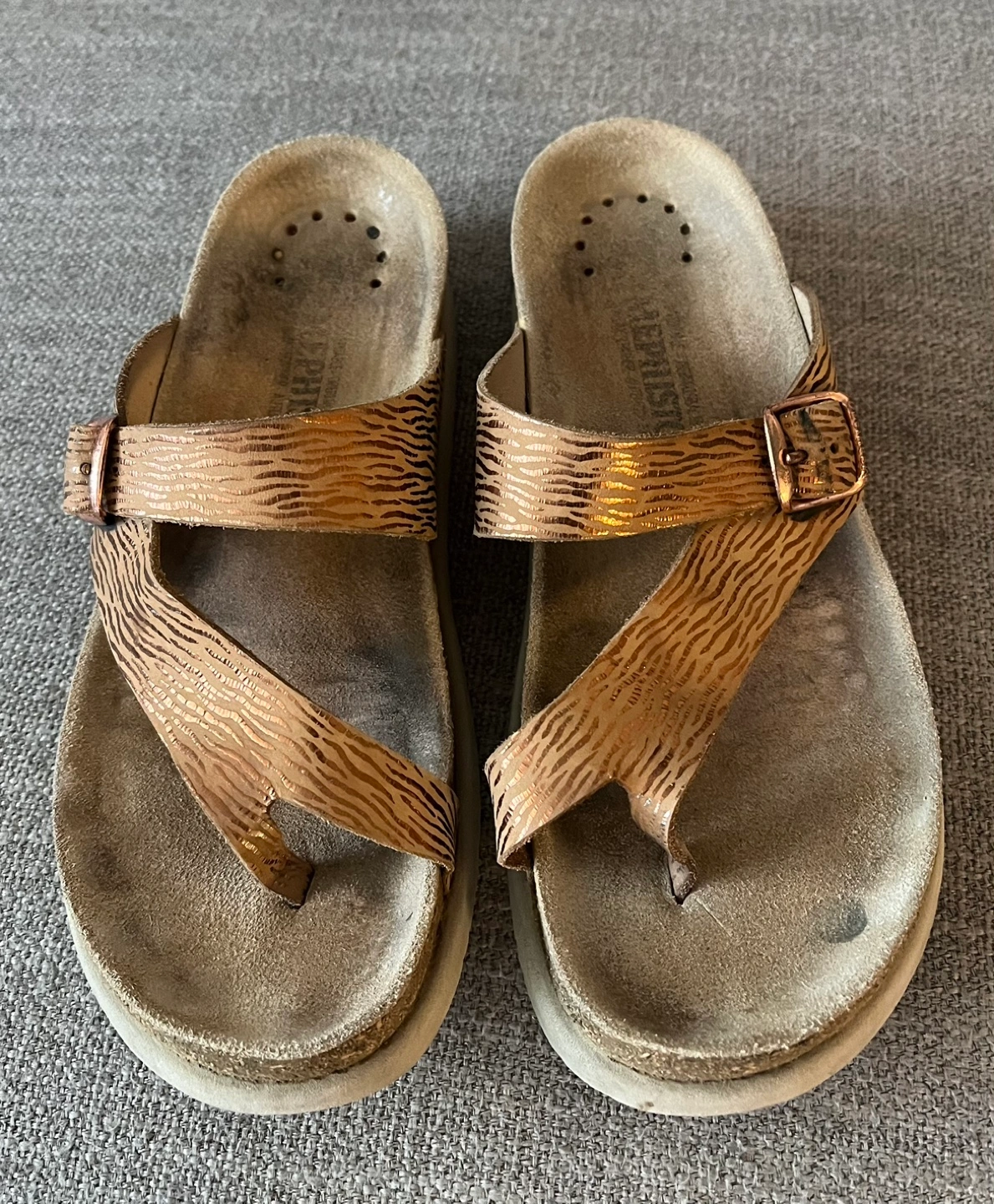 Mephisto Bronze-toned leather sandals Cork platform; Adjustable buckle Women Size 8 Pick up Bloor and Islington Etobicoke