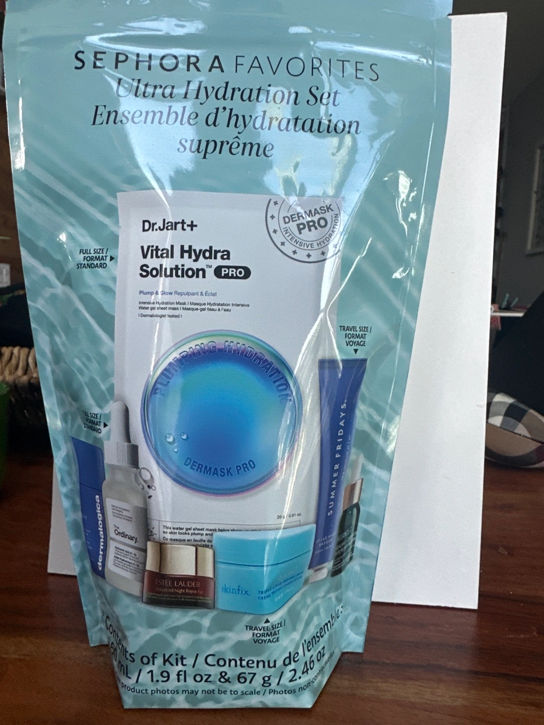 New Sephora Favorites Ultra Hydration Set. Includes Dr.Jart+, Summer Fridays, The Ordinary, Estée Lauder, and Skinfix products. Travel and full-size items. Perfect for hydrating skincare routine.