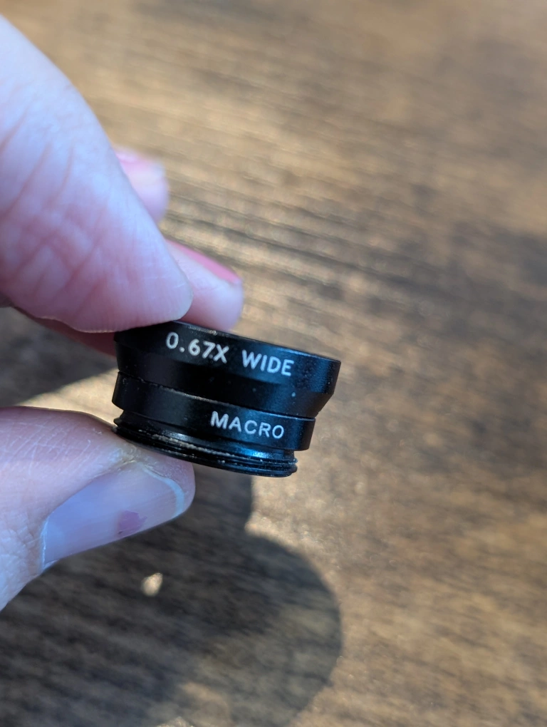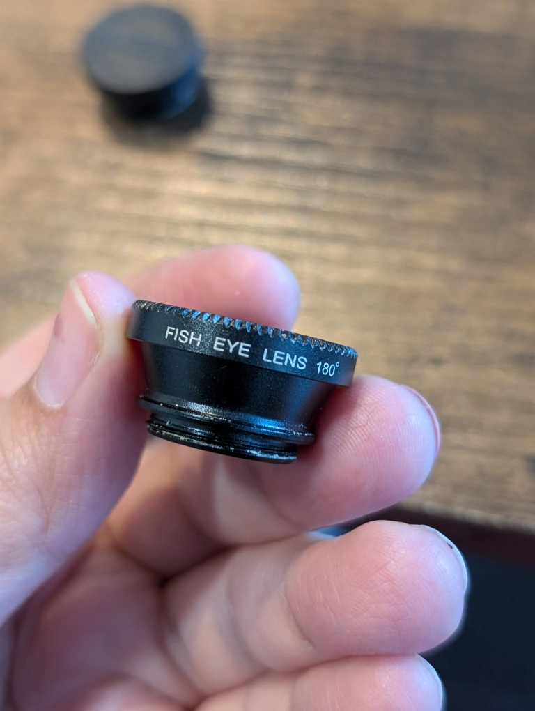 Black plastic lens kit. Includes fish eye, wide angle and macro lenses. Attaches to phone via clip. Good condition. Cash only. Pick up at 60 John Street @ A&W. Final Price.