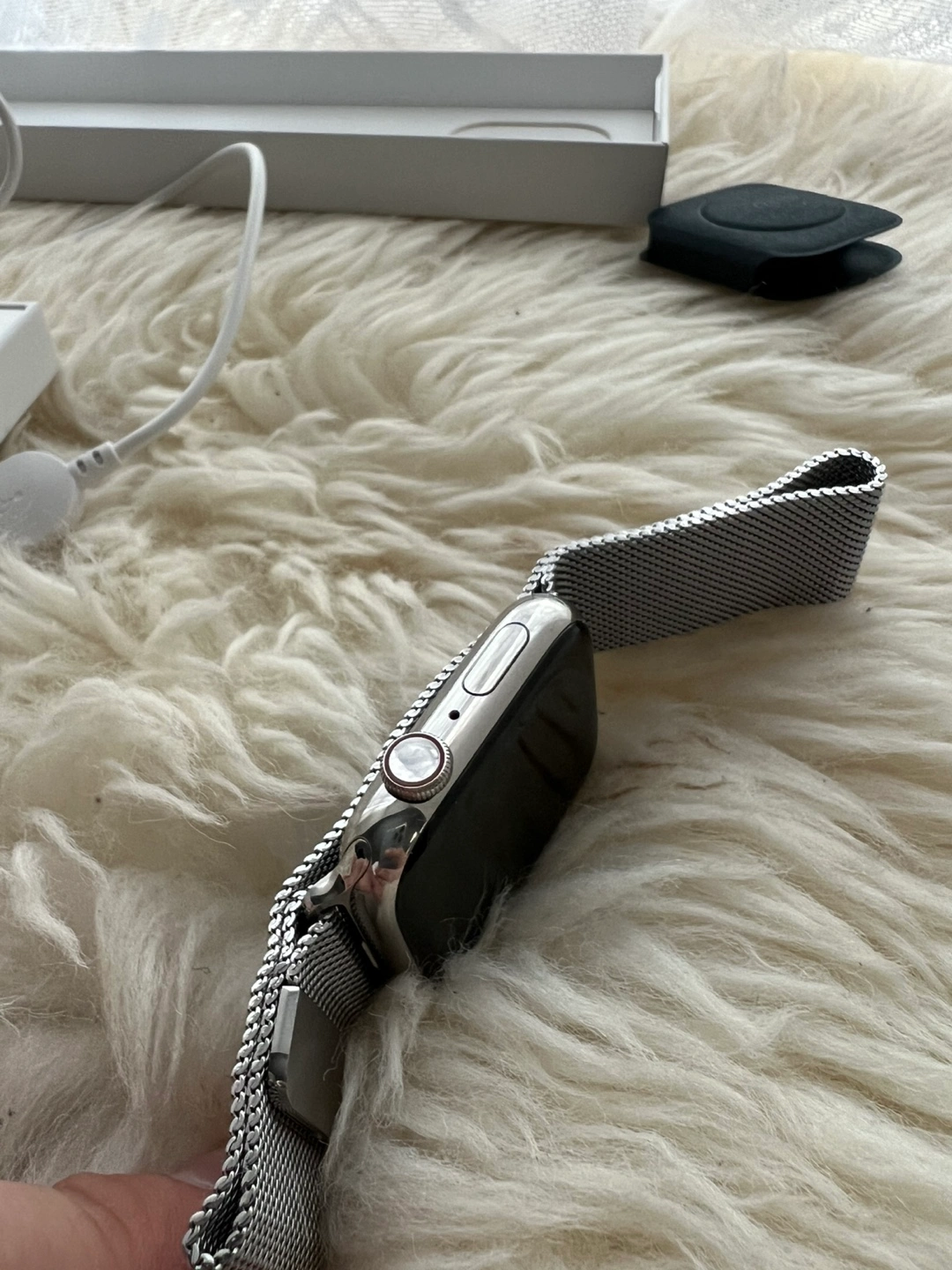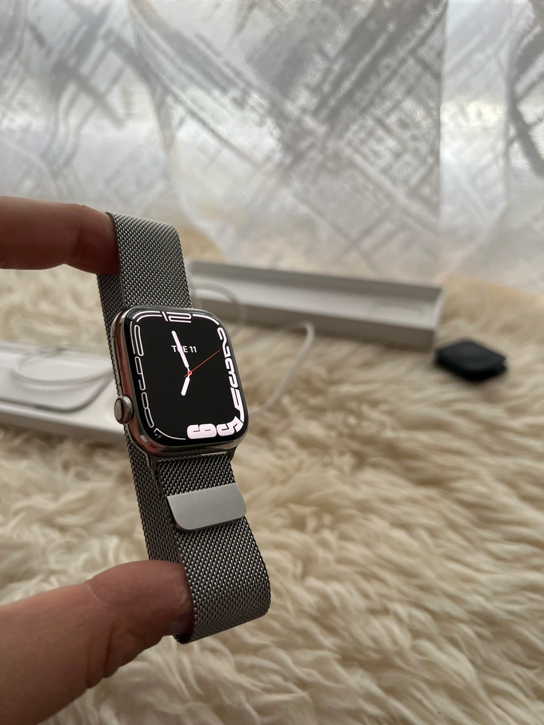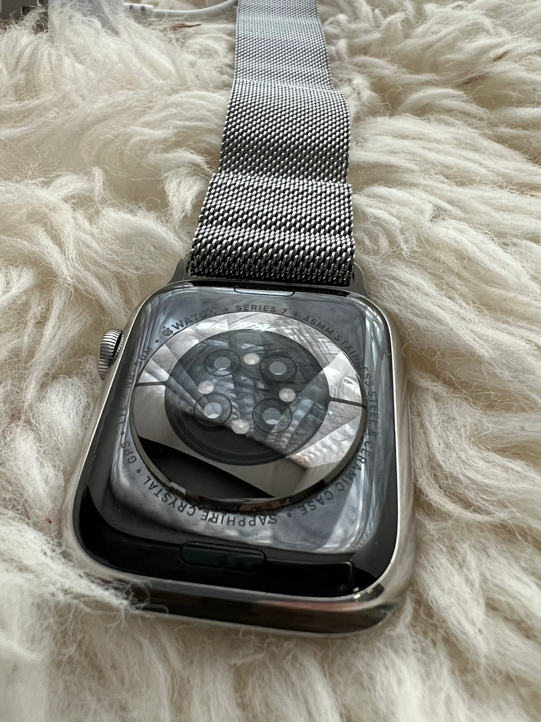 Apple Watch Series 7 Stainless Steel + Cellular Apple Watch Series 7 Stainless Steel Includes Milanese Original Apple Band GPS + Cellular Battery Health: 86% (still lats a full day) Not original box/charger Screen: Factory and screen protector always on so its the same as the day it was bought 100% immaculate. Body: minor scuffs from daily use but nothing that cannot be buffed or seen to the naked eye from afar, no deep scratches! Reason for sale: upgraded to the Ultra 2 Price: $300 Meetup/Pickup/Delivery