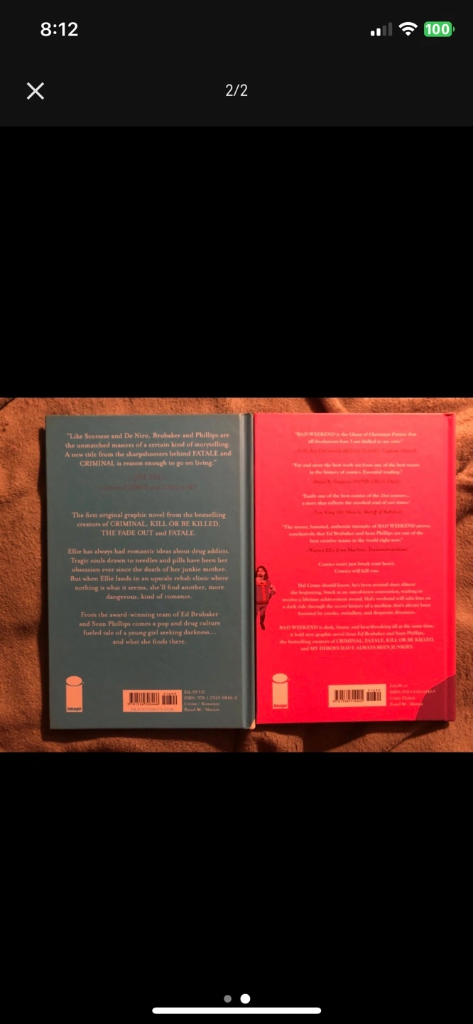 Two Criminal one shot hardcovers by Ed Brubaker and Sean Phillips: My Heroes Have Always Been Junkies and Bad Weekend Both first printing Curb side pickup Cash only Buy multiple items for a discount