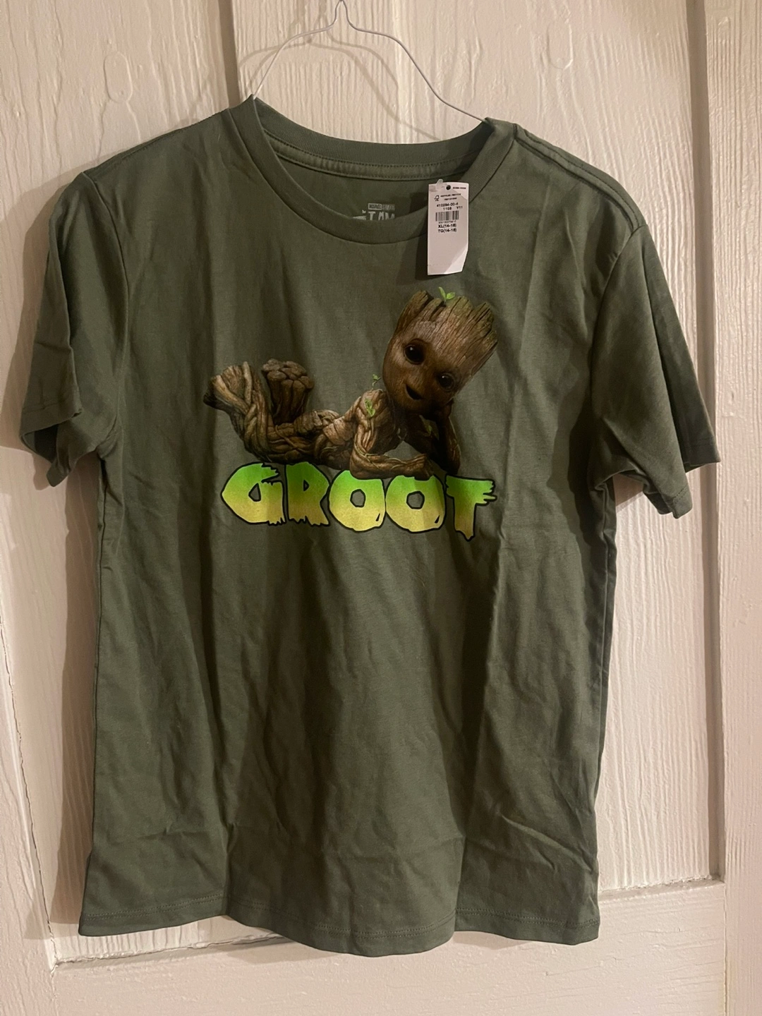Green Marvel Studios I Am Groot graphic tee. Size XL (14-16). Could fit xs in women’s.