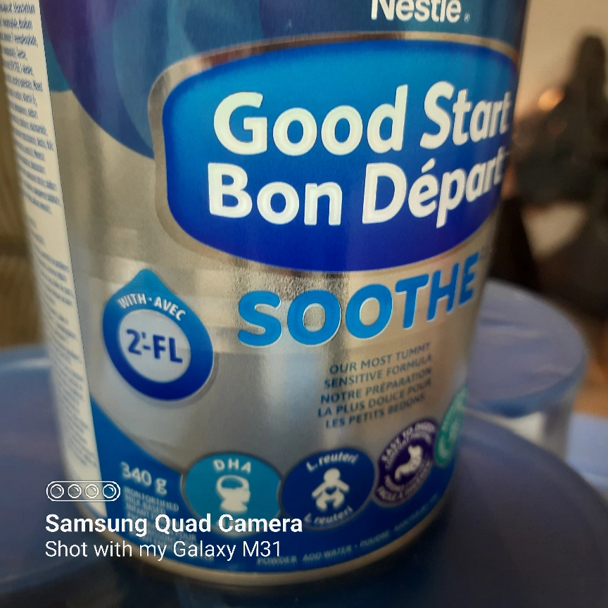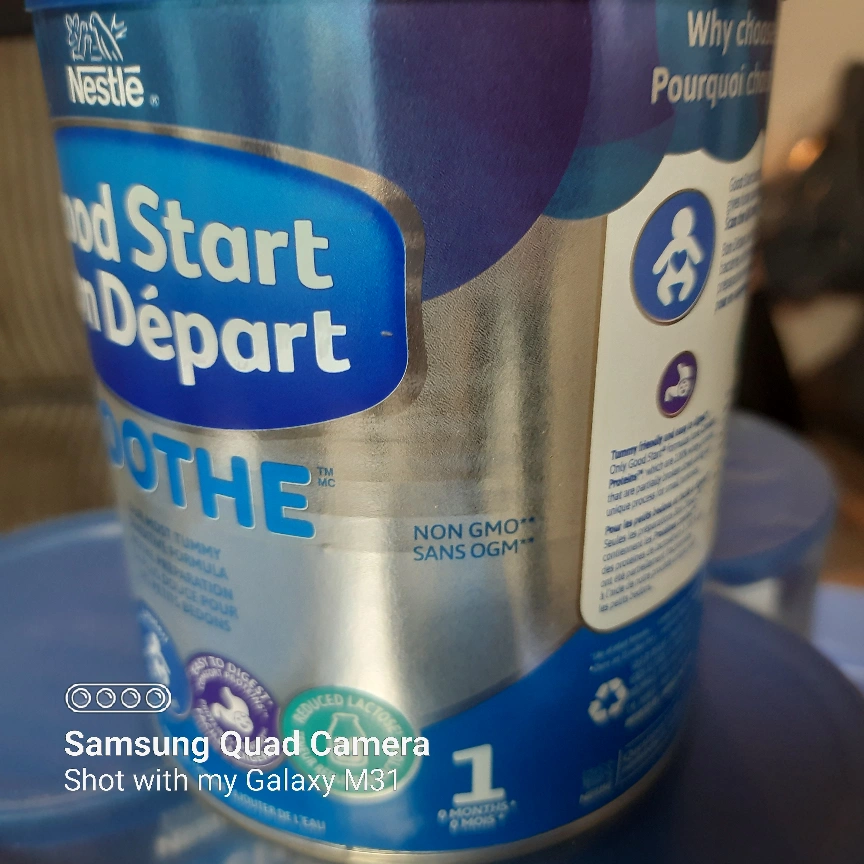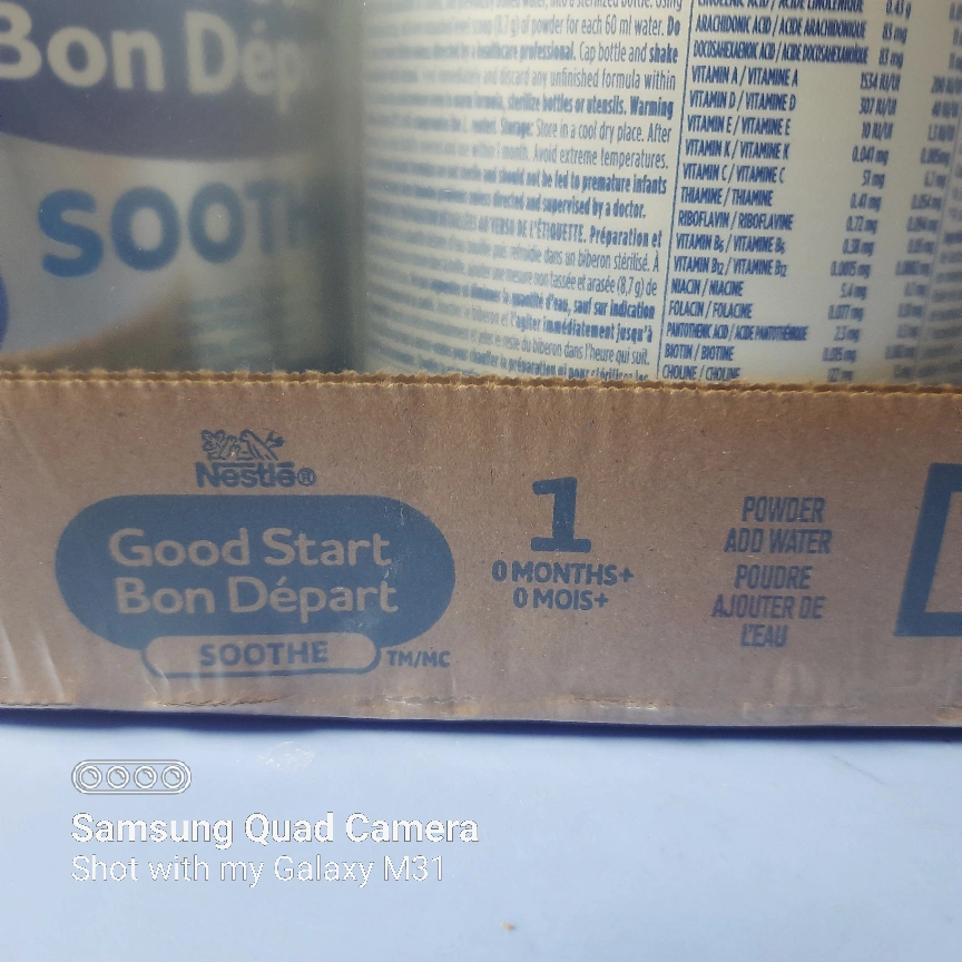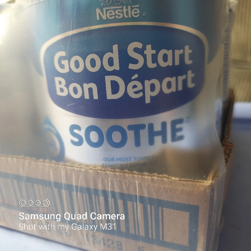 18 cans of Nestlé Good Start Bon Départ Soothe infant formula. Non-GMO. Suitable for infants 0 months+. Sensitive formula. Powder. Add water. 6 can price only $50.