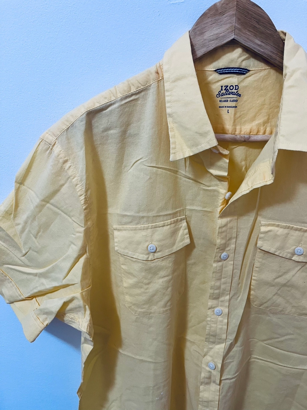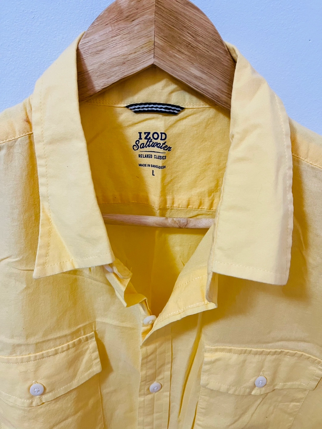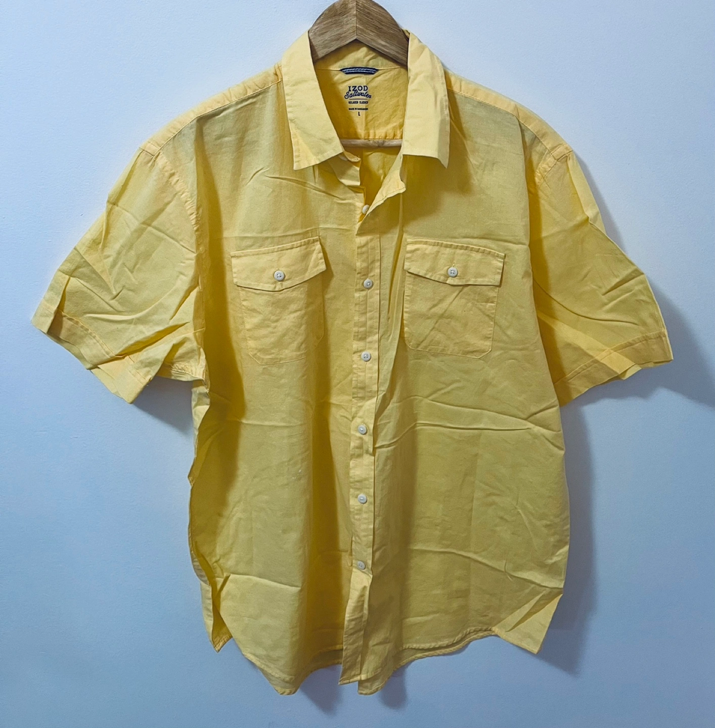 This Izod Saltwater shirt is a must-have for any fashion-conscious man. Colour is sailboat yellow, perfect for a casual day out. The shirt is made of cotton material, ensuring comfort and durability. It has a relaxed fit and a button-up closure, with a collared neckline and spread collar style. IZod Saltwater Line Men ’s large Sailboat Yellow colour Like new PU Ottawa & Westmount, Kitchener