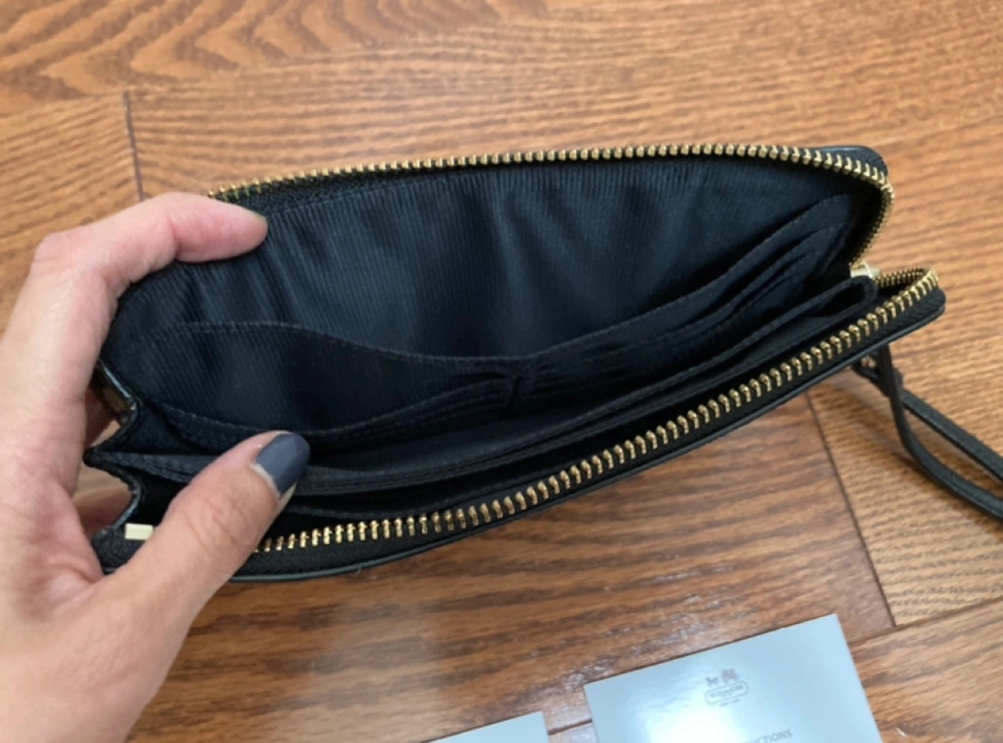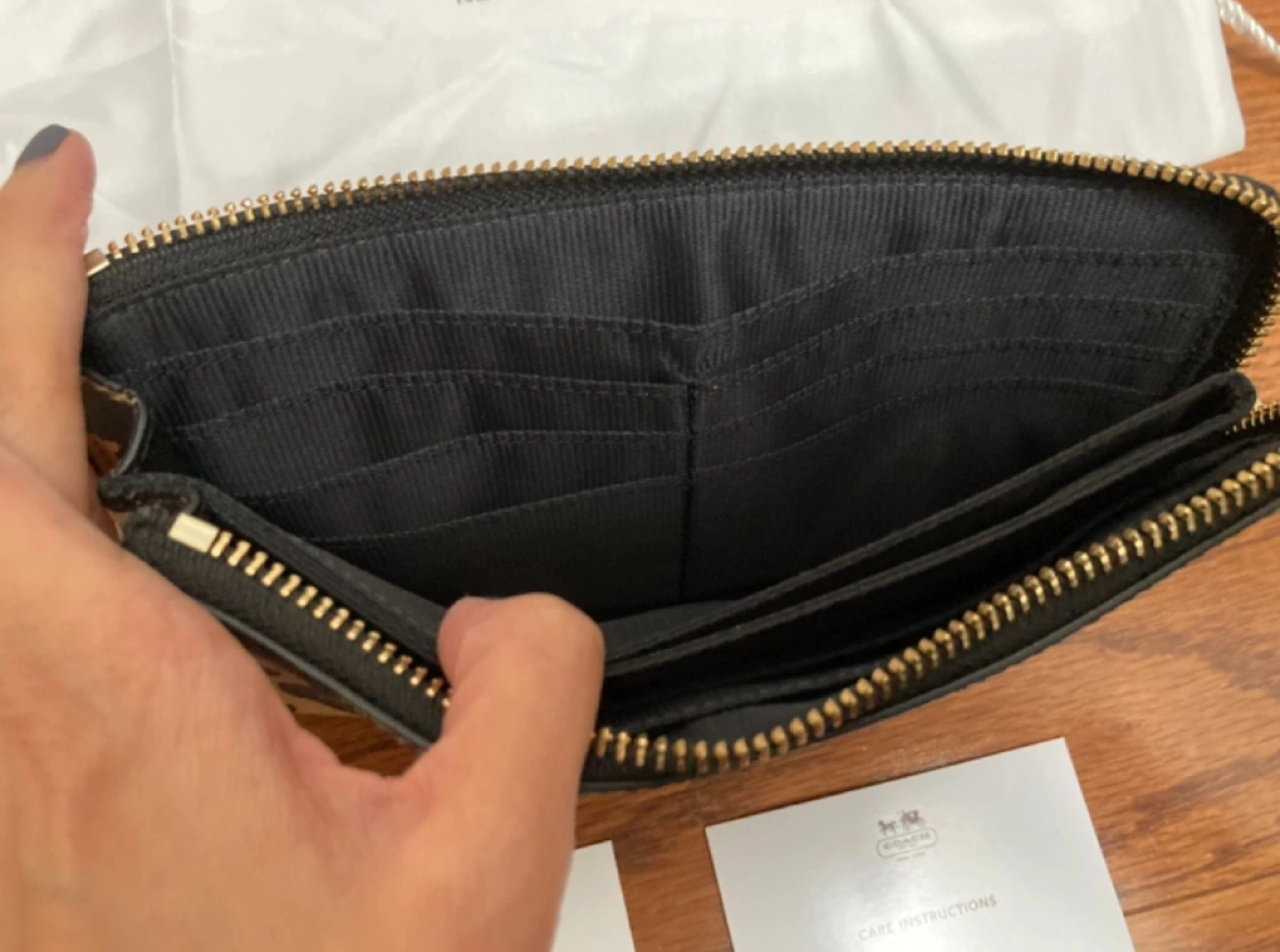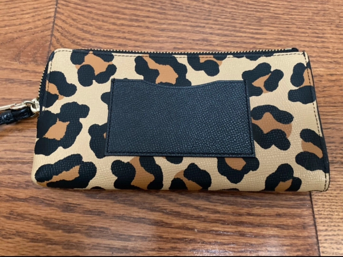 Smoke free pet free home Pick up only Yonge & Steeles Item brought to driveway Genuine Coach Wristlet wallet in Leopard print leather. Brand new never used - includes dust bag Features detachable strap, 6 card slots, middle section comfortably fits an iPhone or other, bill slots. Tissue box for size reference