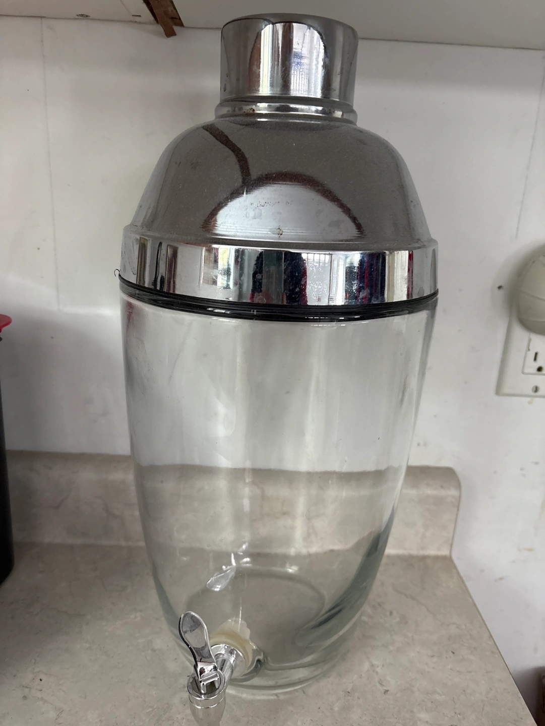 Large glass beverage dispenser in excellent condition…Features a metal lid and a spigot. Perfect for parties or everyday use… pick up on Chandos Drive in Chicopee area of South Kitchener