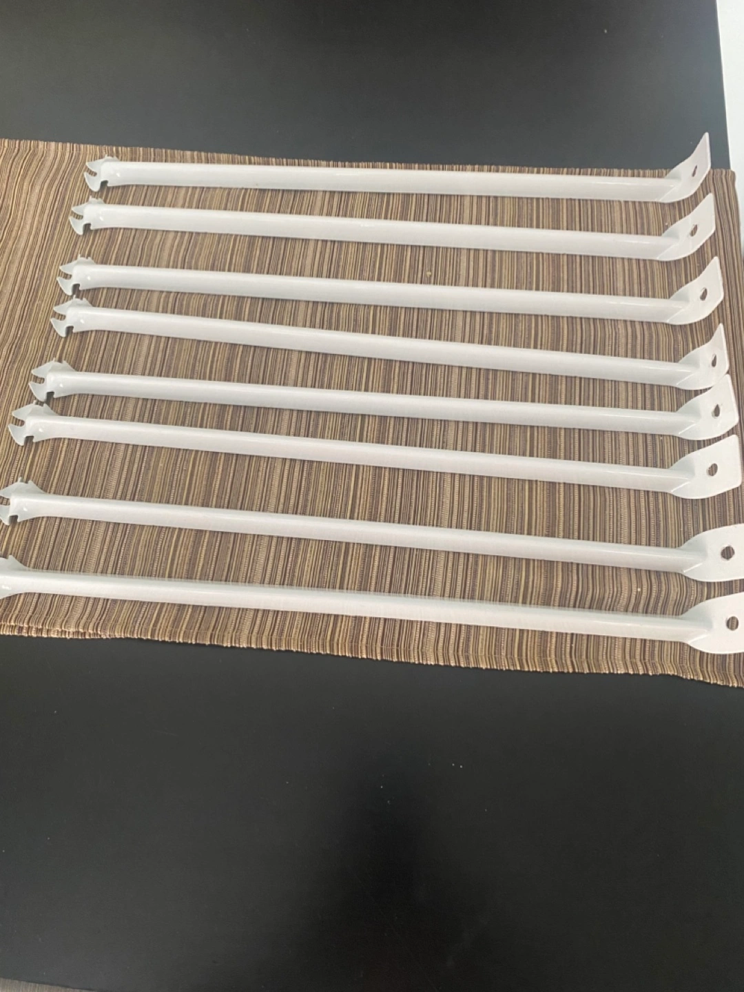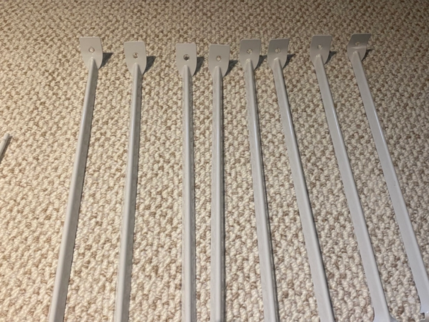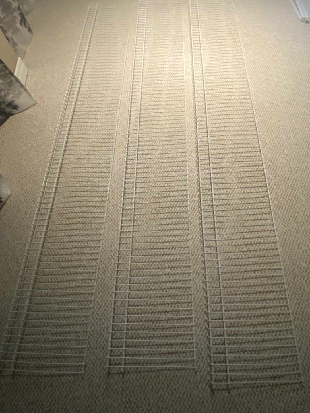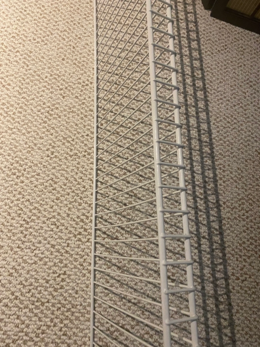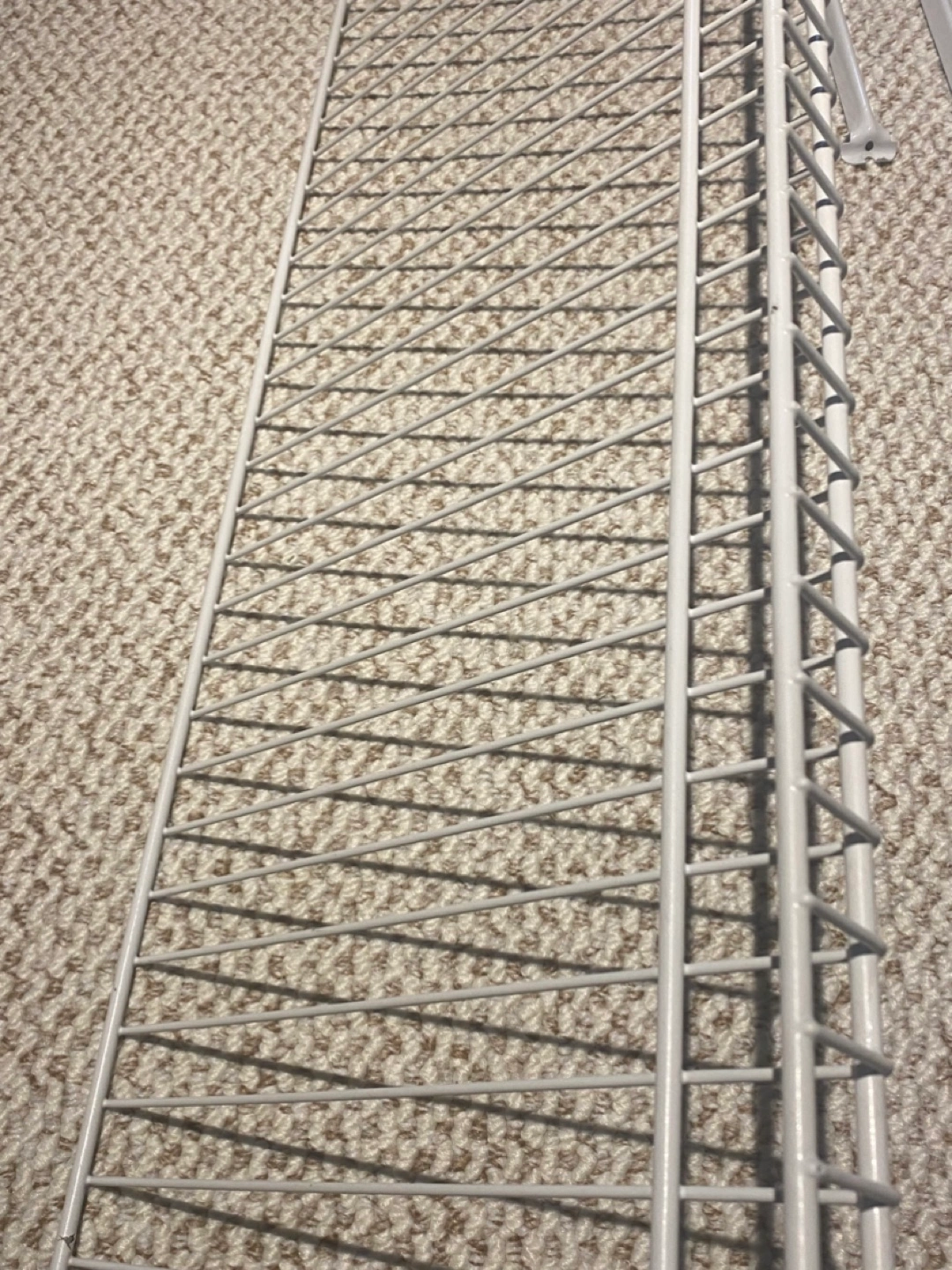 Three white wire metal closet shelving units measuring 82” x 12” 8 White metal brackets measure 16” A few bracket ends are slightly curved, still functional. Used for closet organizer. All clean, no rust, great condition. Cash and pick up only, Cawthra and Lakeshore area in Mississauga.