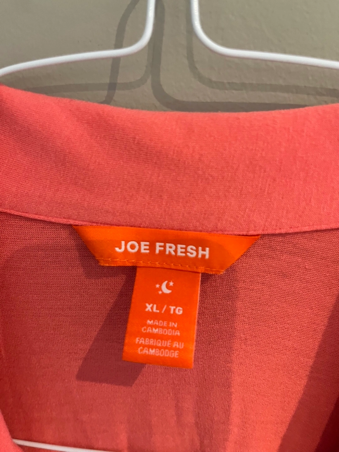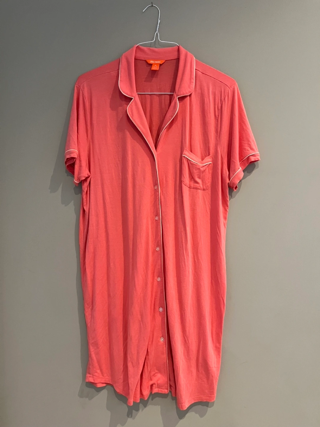 Coral pink nightshirt. Short sleeves. Button closure. Size XL. Cash only