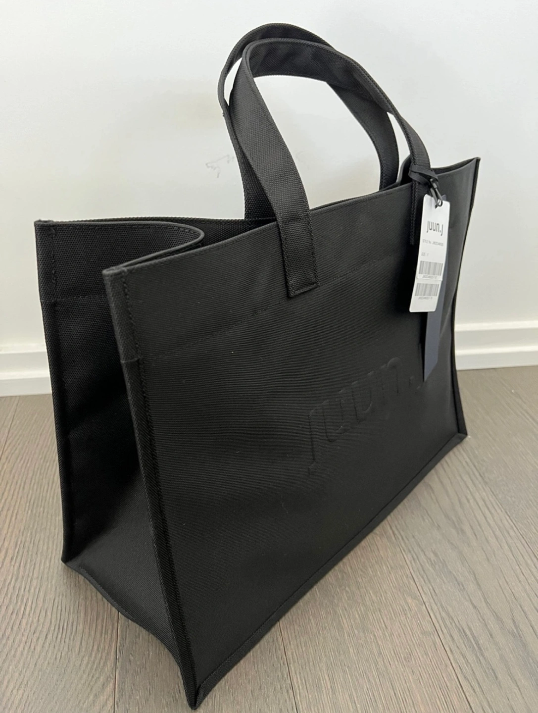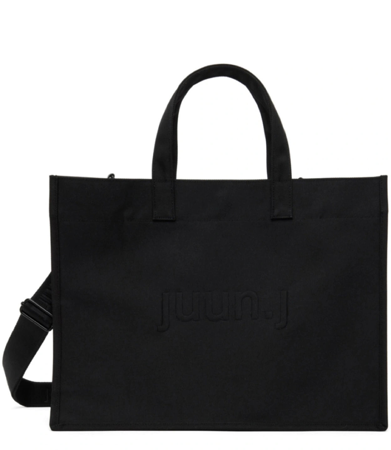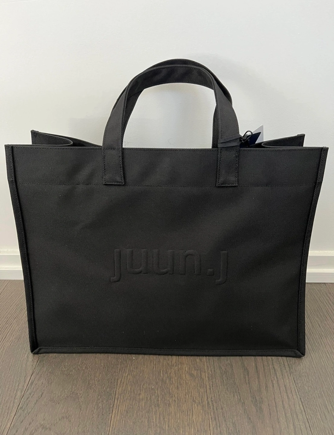 Brand New with Tags. Large black tote bag. Features Juun.J branding. Two top handles and a detachable shoulder strap. Perfect for everyday use.