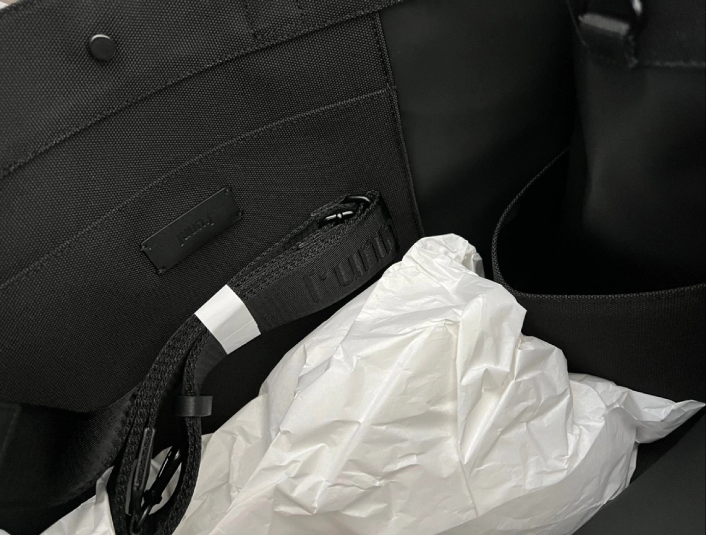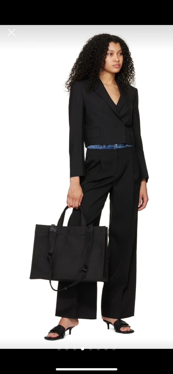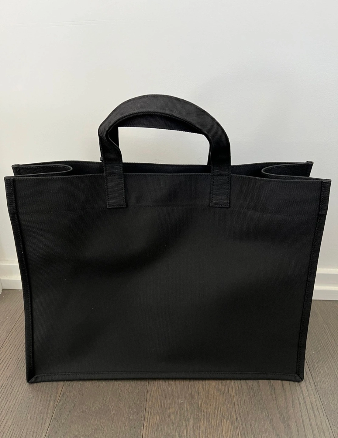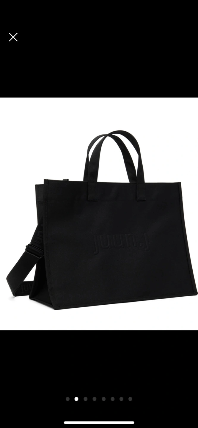 Brand New with Tags. Large black tote bag. Features Juun.J branding. Two top handles and a detachable shoulder strap. Perfect for everyday use.