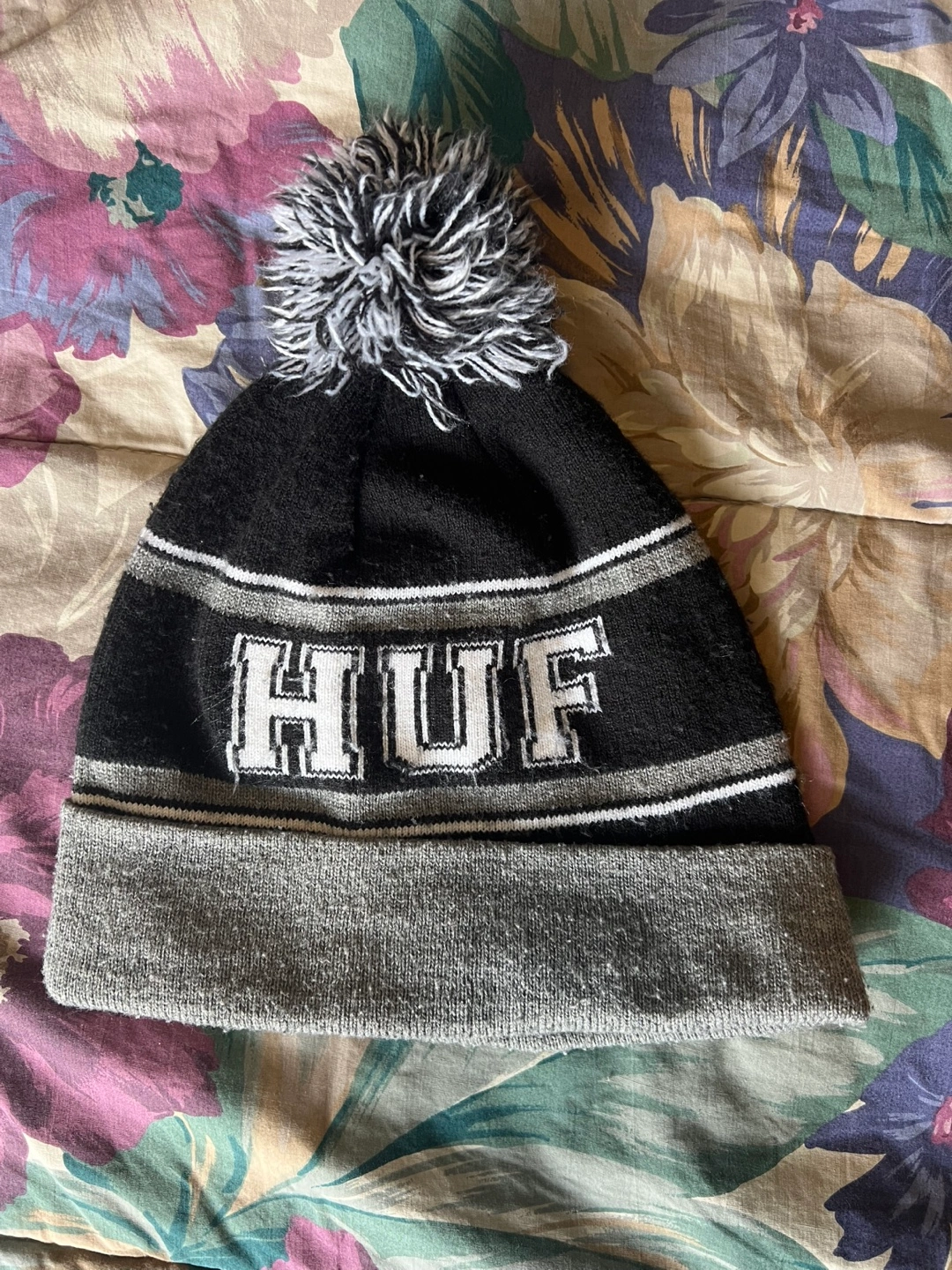 Grey and black HUF beanie. Features a pom-pom. Knit material. Adult size. Cash McNicoll & Midland Area Pickup (3720 Midland Avenue, Toronto, CA M1V 4V3) Smoke Free Home ๐ก Sanitized and Washed Thoroughly ๐งบ Bundle to Save More ๐ Offers and Questions are Welcome ๐