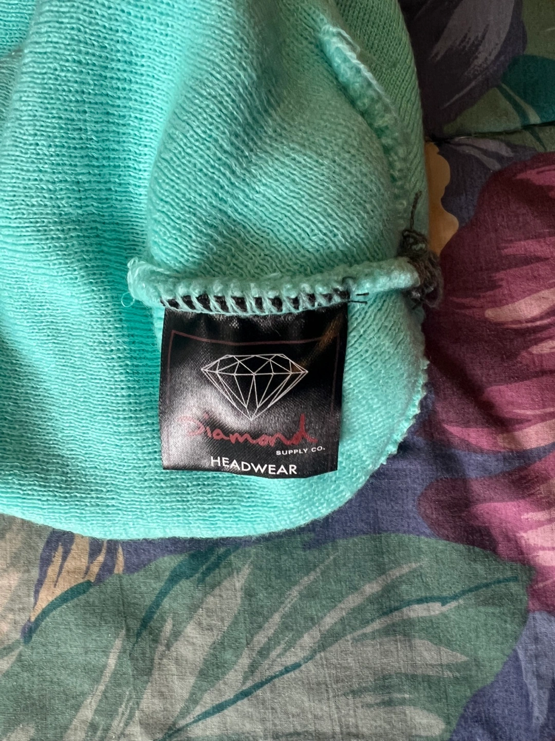 Mint green beanie with grey stripes and pompom. Features Diamond Supply Co. branding. Soft knit material. Cash McNicoll & Midland Area Pickup (3720 Midland Avenue, Toronto, CA M1V 4V3) Smoke Free Home π‘ Sanitized and Washed Thoroughly π§Ί Bundle to Save More π Offers and Questions are Welcome π