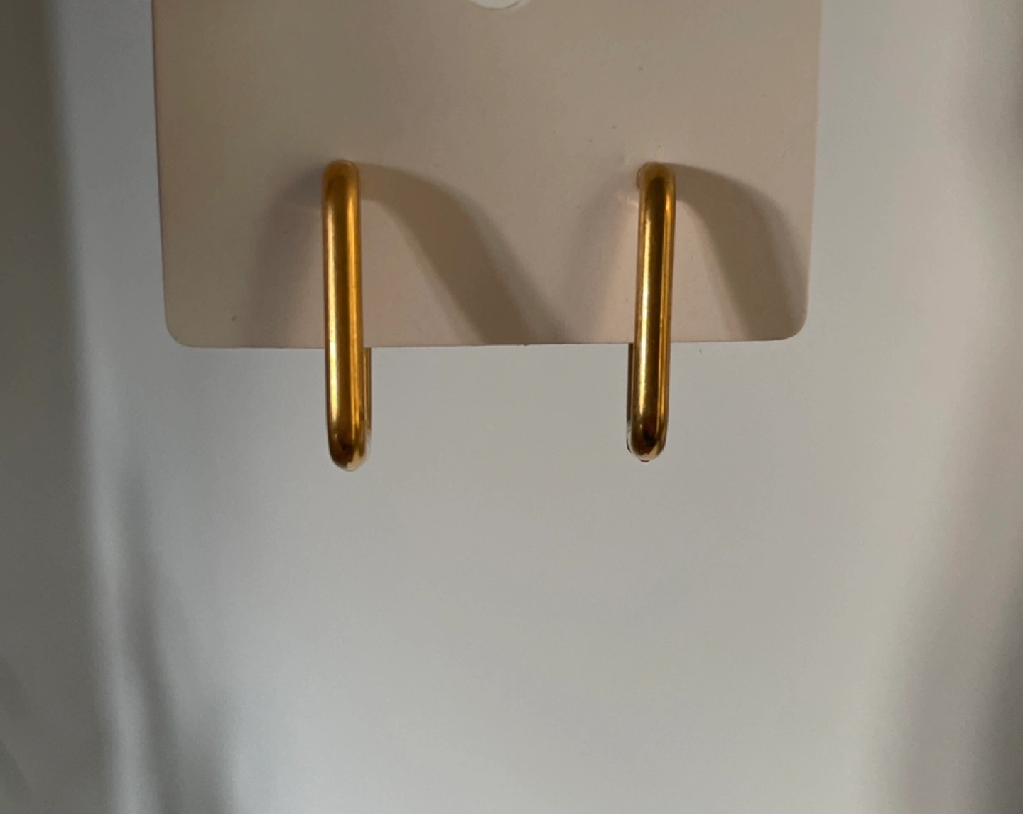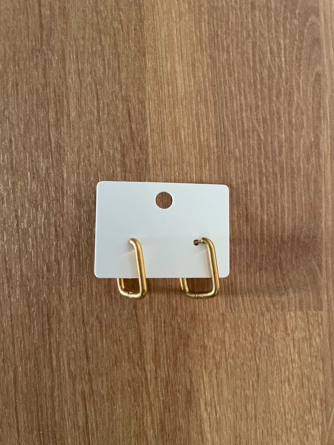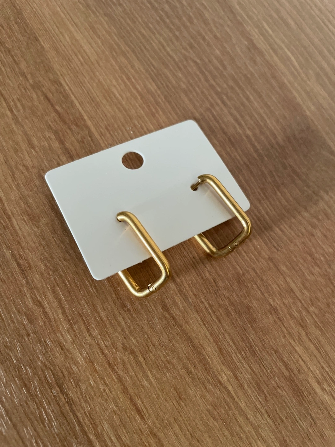 Pair of gold square hoop earrings. Simple design. Lightweight. Perfect for everyday wear.