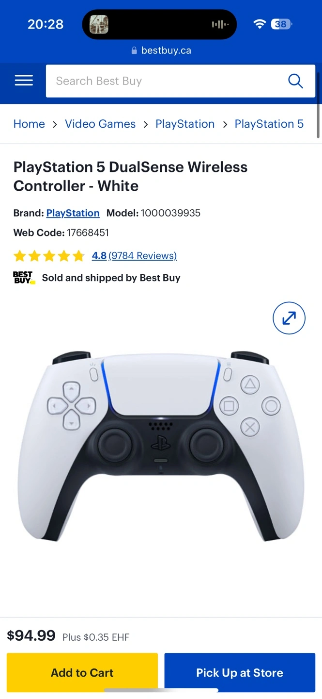 White PlayStation 5 DualSense controller. Wireless. Excellent condition.