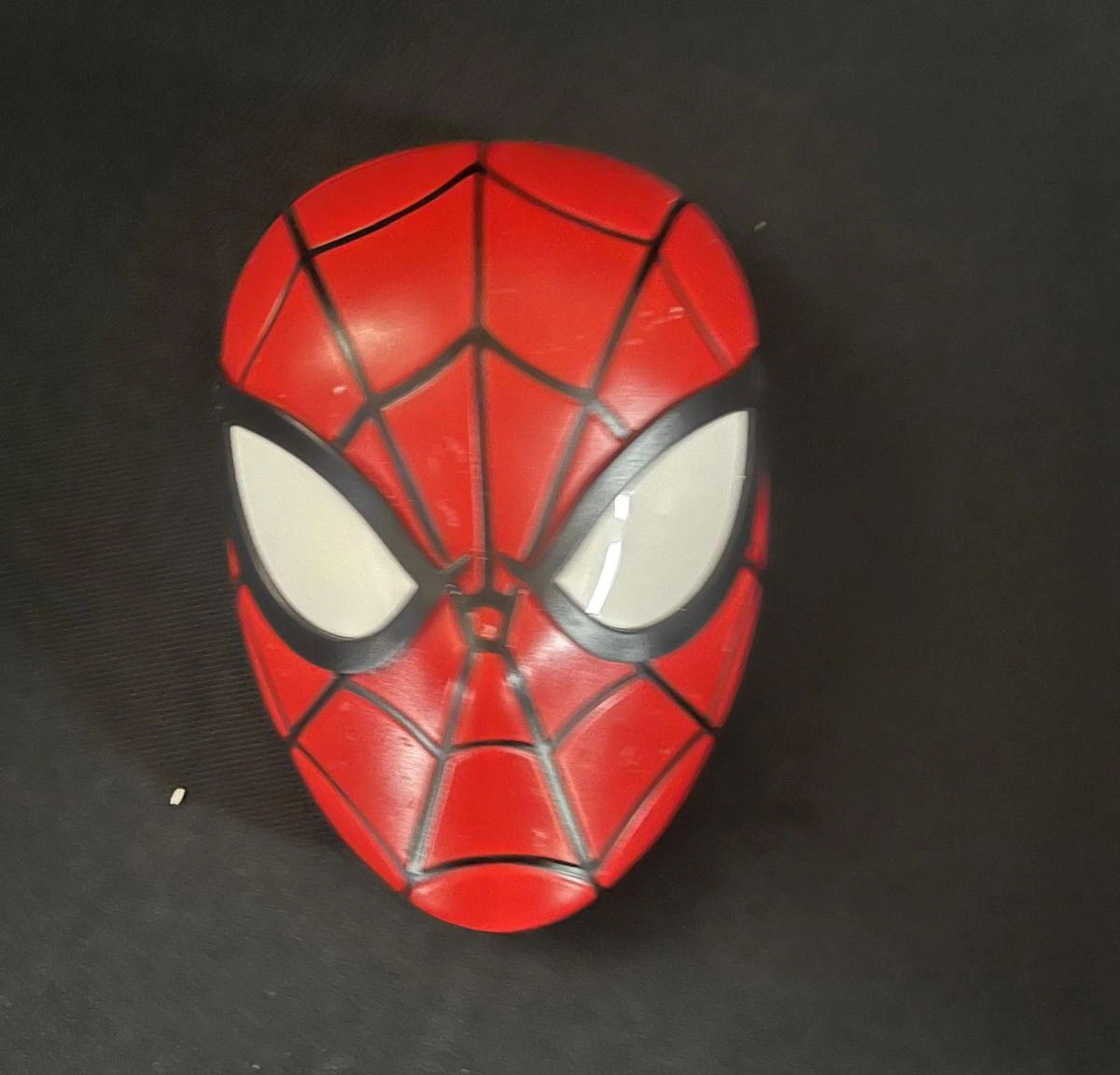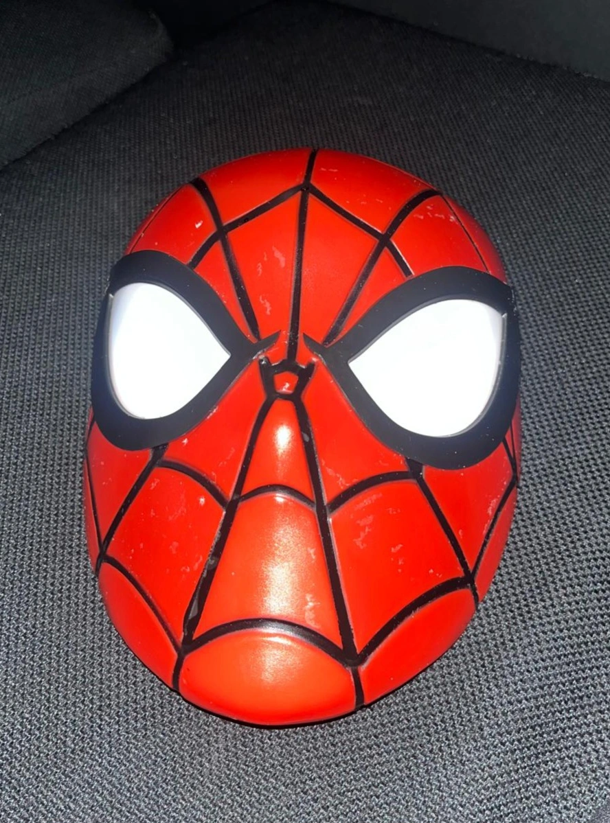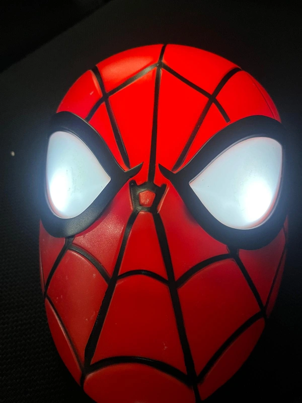 Red Spider-Man mask. Features light-up eyes. Wall mountable. Great for kids' rooms.