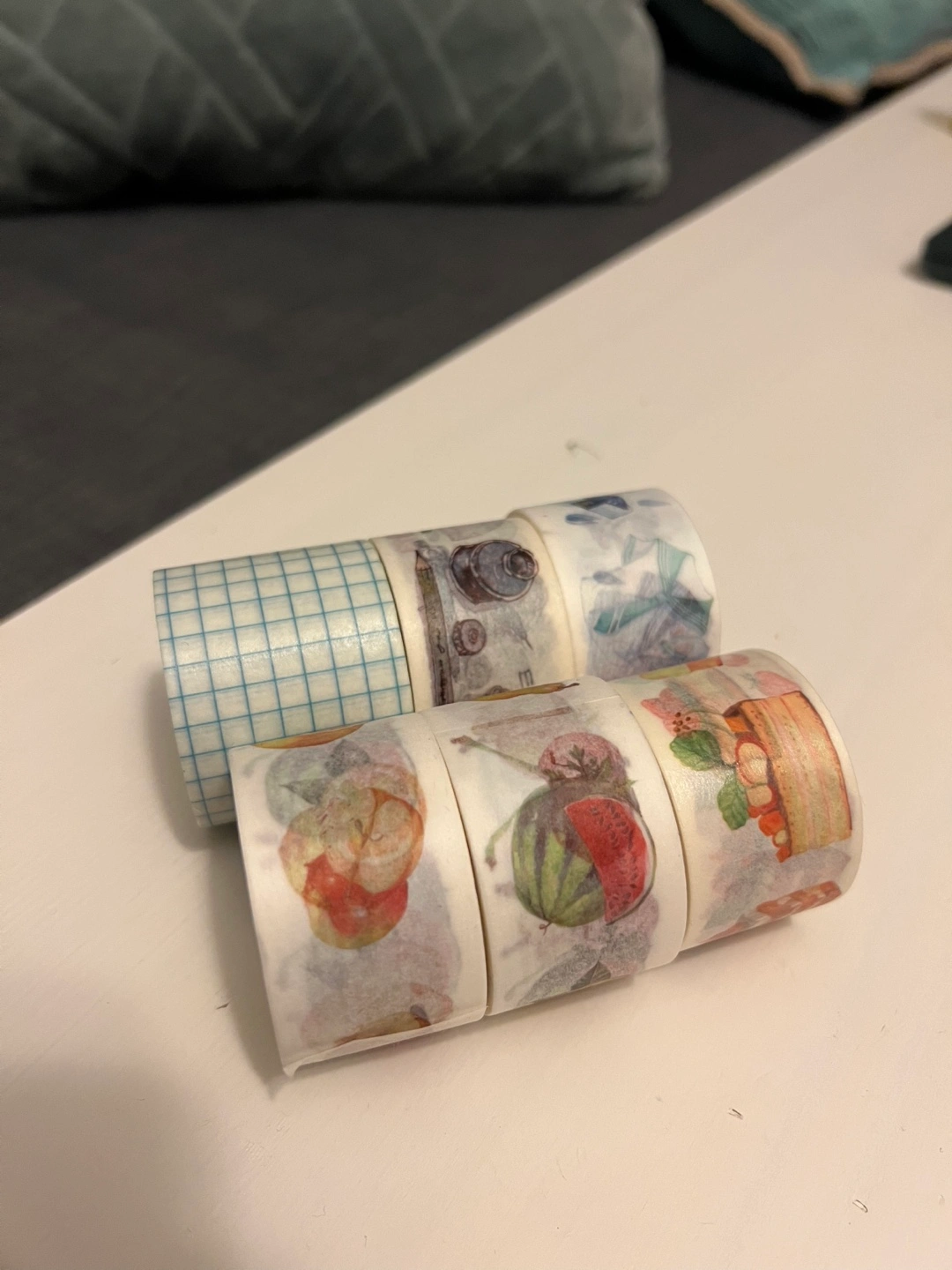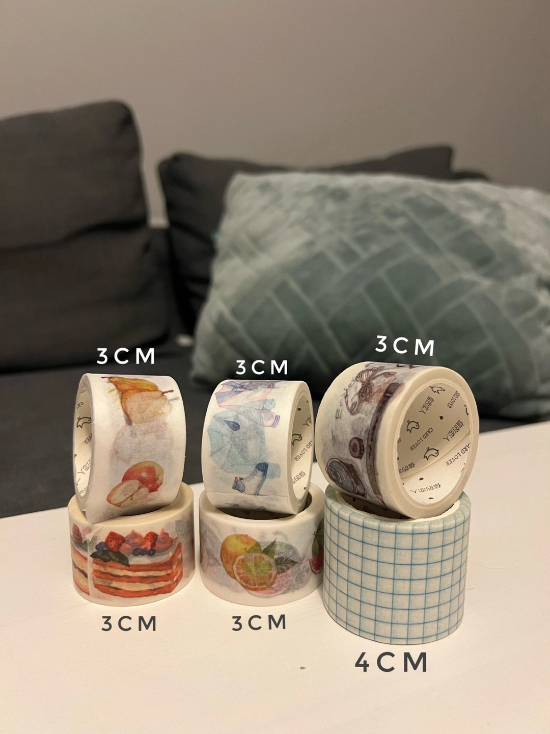 Washi Tape Set – Fruit, Clothing, & Grid Patterns (6 Rolls) This set includes: - 5 rolls of 3cm wide tape - 1 roll of 4cm wide tape Featuring fun fruit, clothing, and grid patterns. Perfect for journaling and crafting. All for just CAD$9.99!
