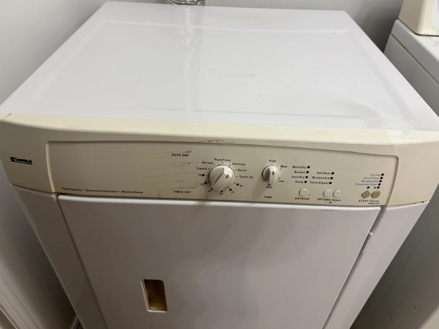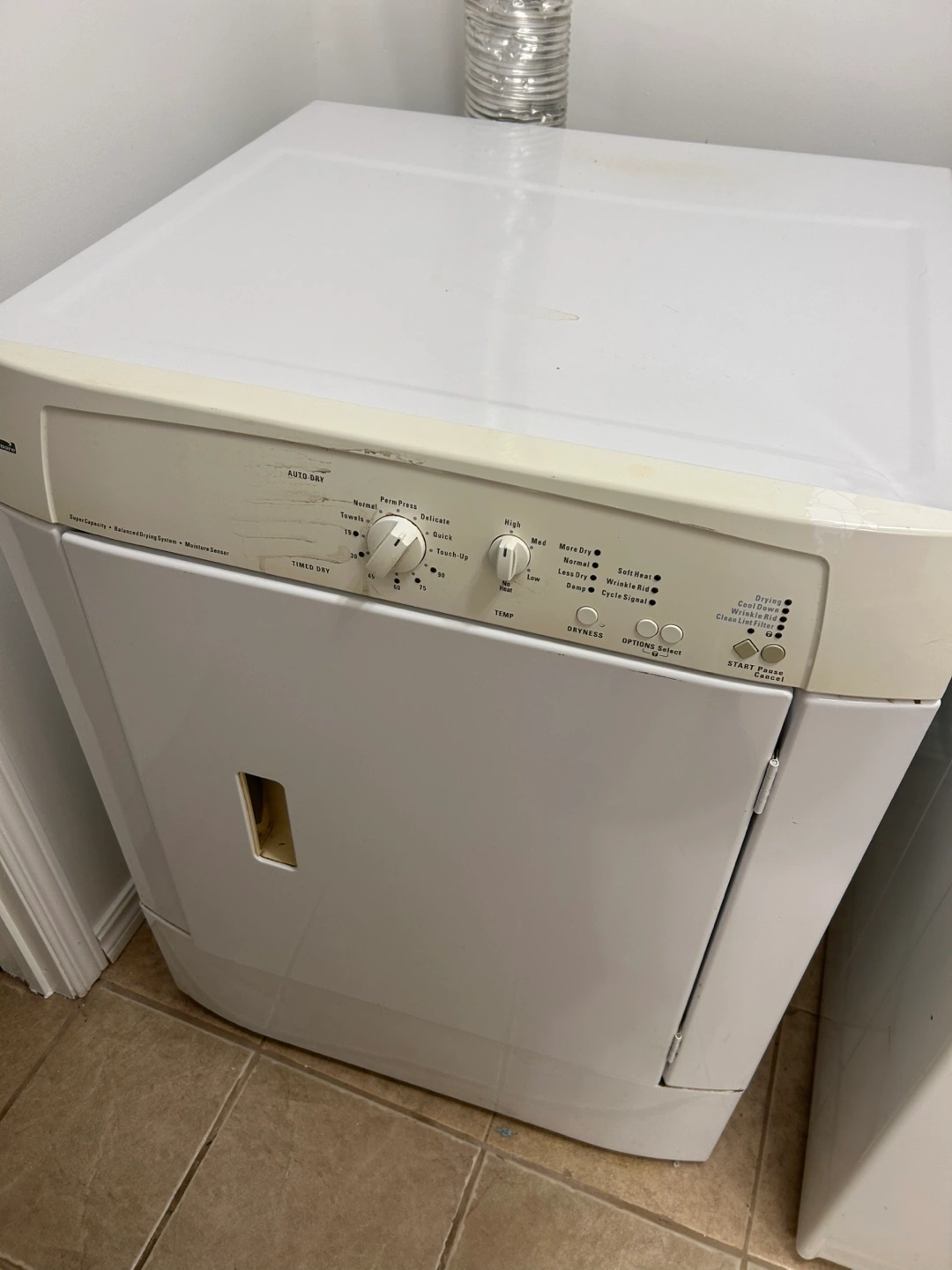 White electric dryer. Features multiple drying cycles and temperature settings. Ready for pick up in Beeton Ontario.