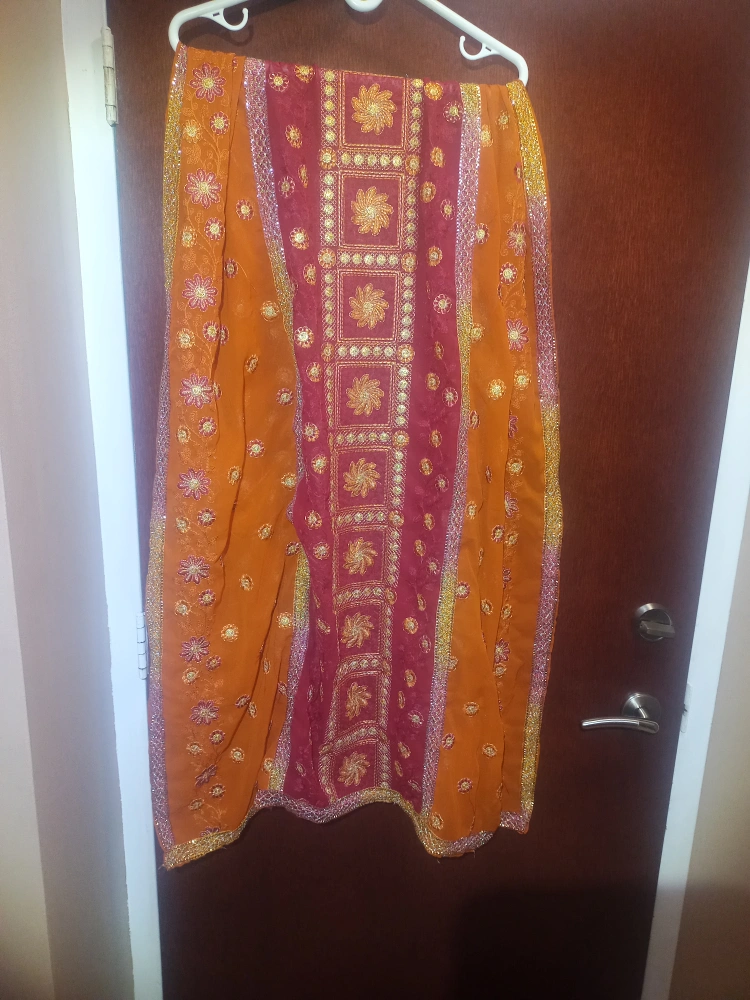 In good condition. Clean. It has Gold trim and design. Must see in person. Measurements are: 36" inches in Width 80" inches ipn Length. Check out my other listings.