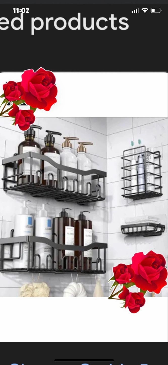 4- piece bathroom organizer set. Includes two larger shelves and 2 smaller shelf. Black metal wire construction. Perfect for shower or vanity storage.