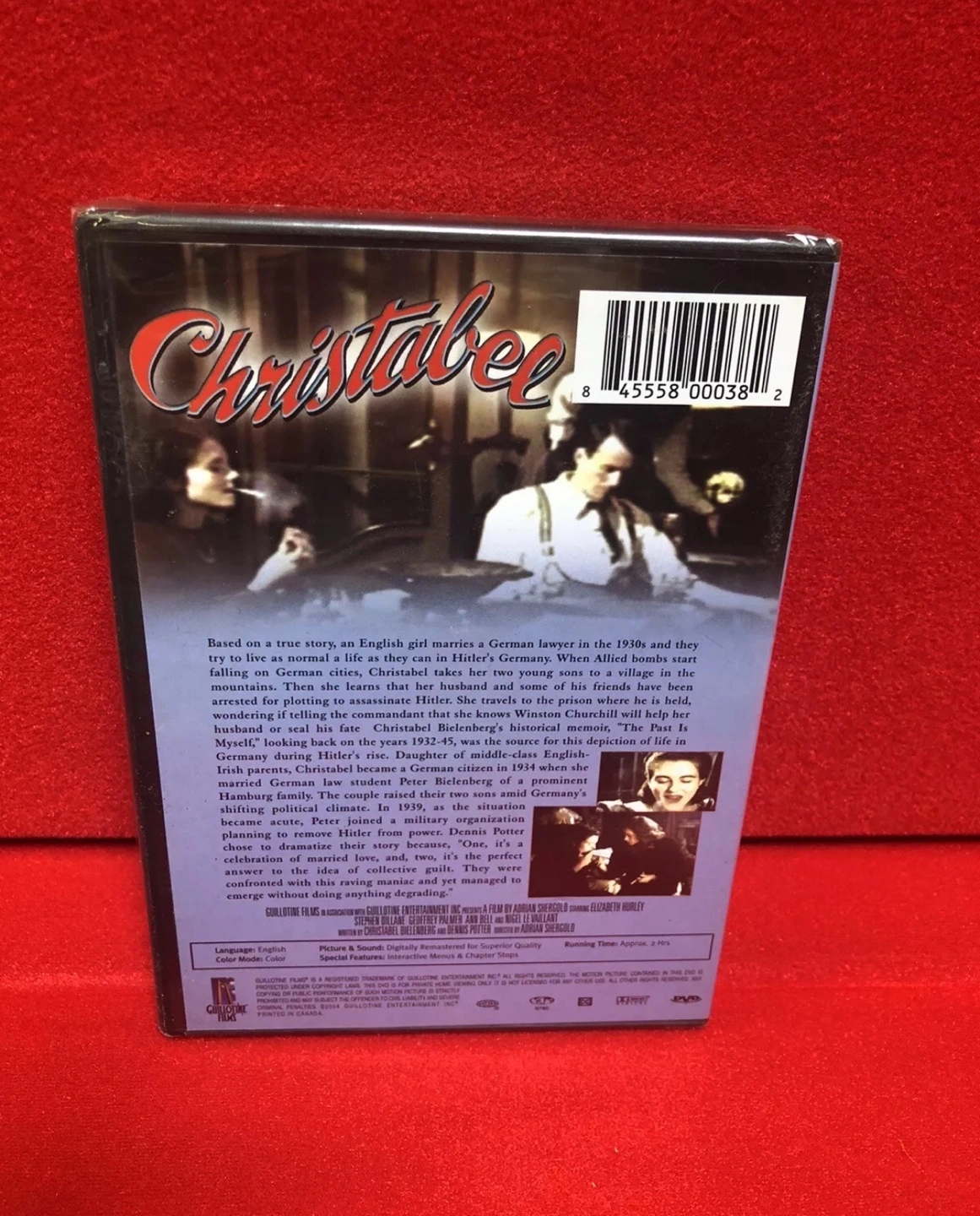 New Cristabel DVD movie. Based on a true story, an English girl marries a German lawyer. Set in the 1930s and they witness the rise of fascism in Germany. Features Elizabeth Hurley, Stephen Dillane, Robert Palmer and Ian Bannen. Excellent condition. $5 Pick up Victoria Park and O’Connor area