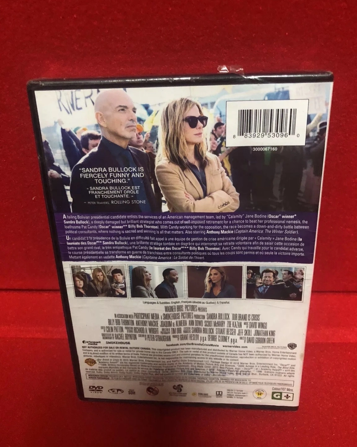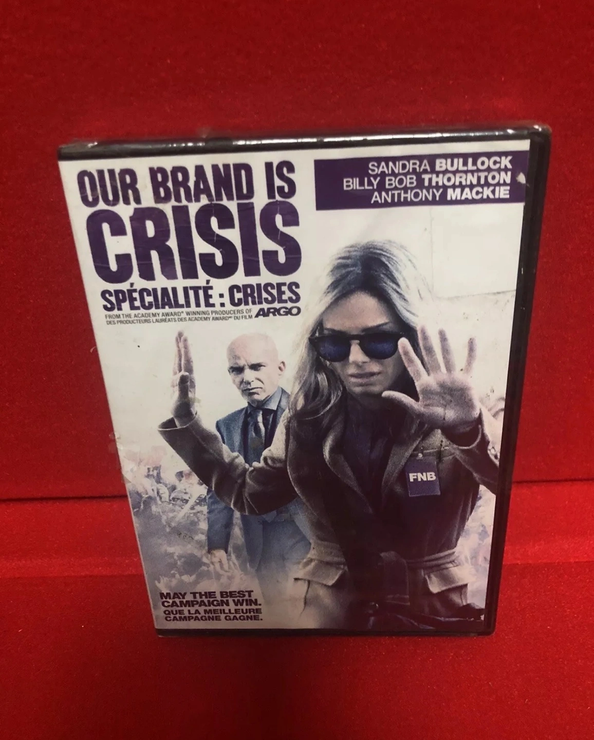 New Our Brand Is Crisis DVD DVD of the movie Our Brand Is Crisis. Features Sandra Bullock, Billy Bob Thornton, and Anthony Mackie. Includes English and French subtitles. $5 Pick up Victoria Park and O’Connor area