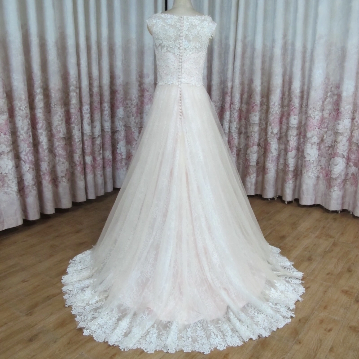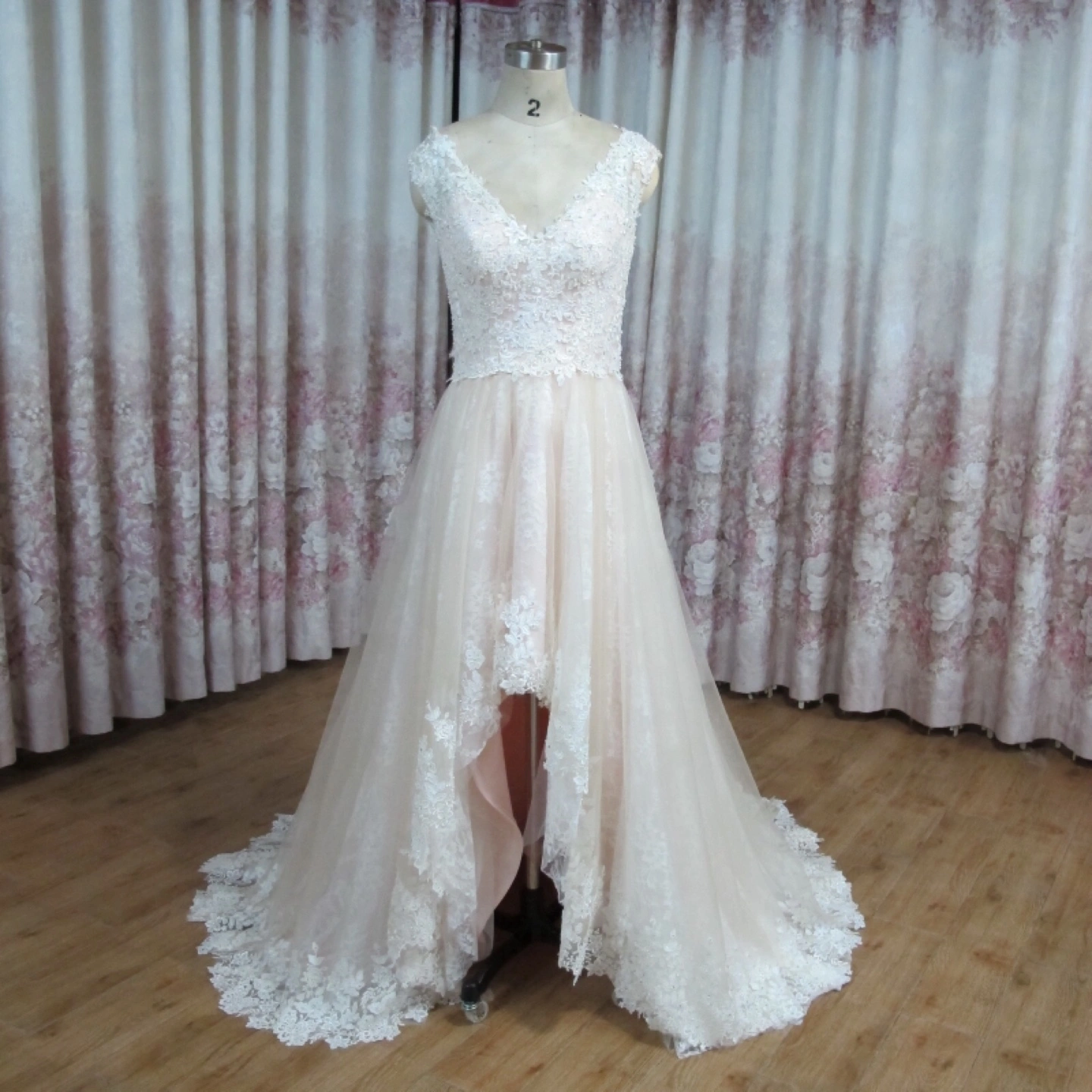 Never worn High-Low Blush Lace Wedding Dress - Size 6