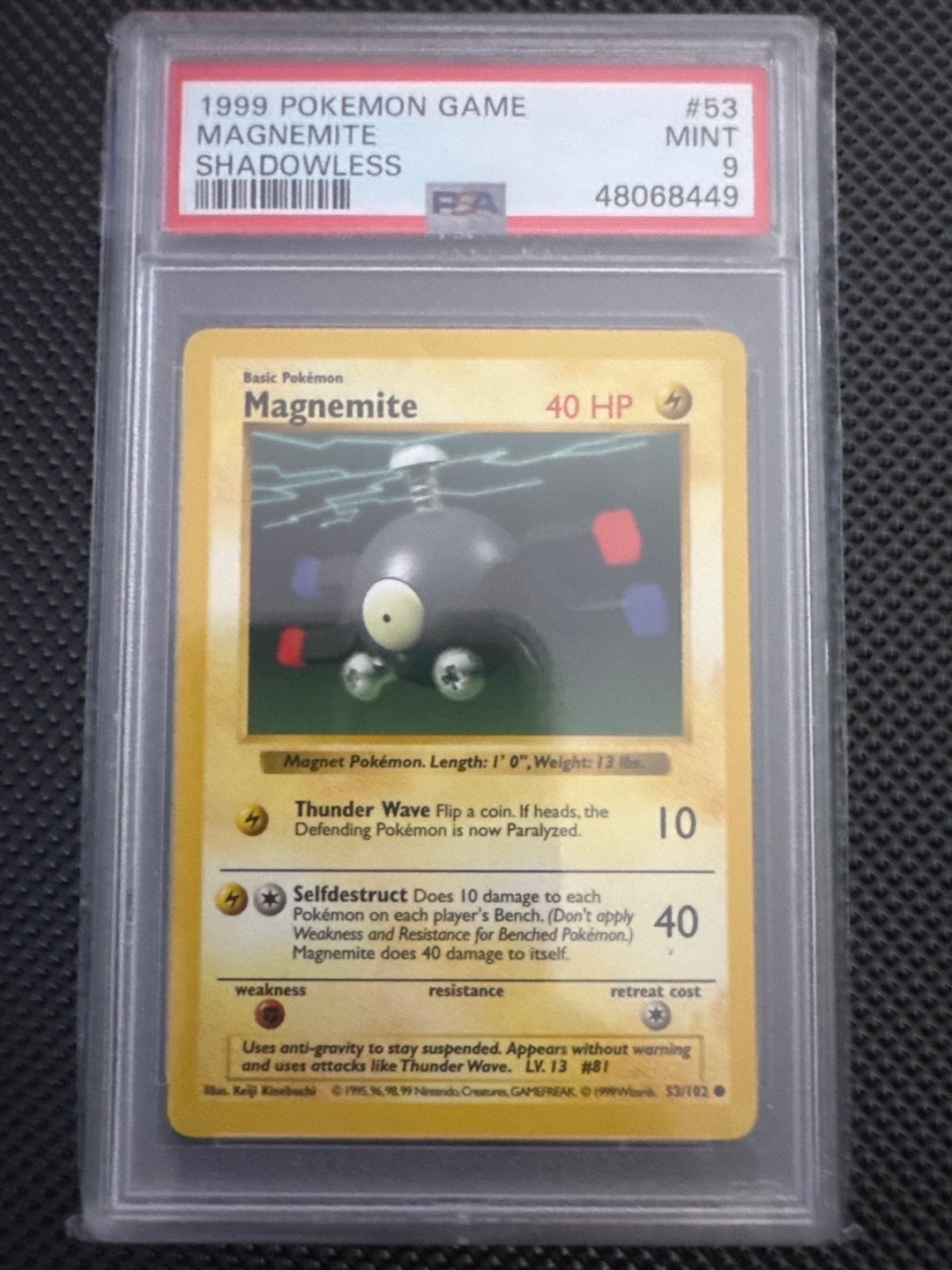 PSA 9 graded 1999 Pokemon card. Magnemite #53. Shadowless. Mint condition.