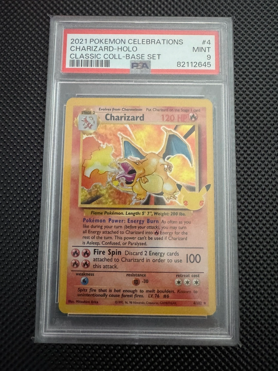Graded PSA 9. Mint condition. Charizard-Holo from the 2021 Pokemon Celebrations Classic Collection