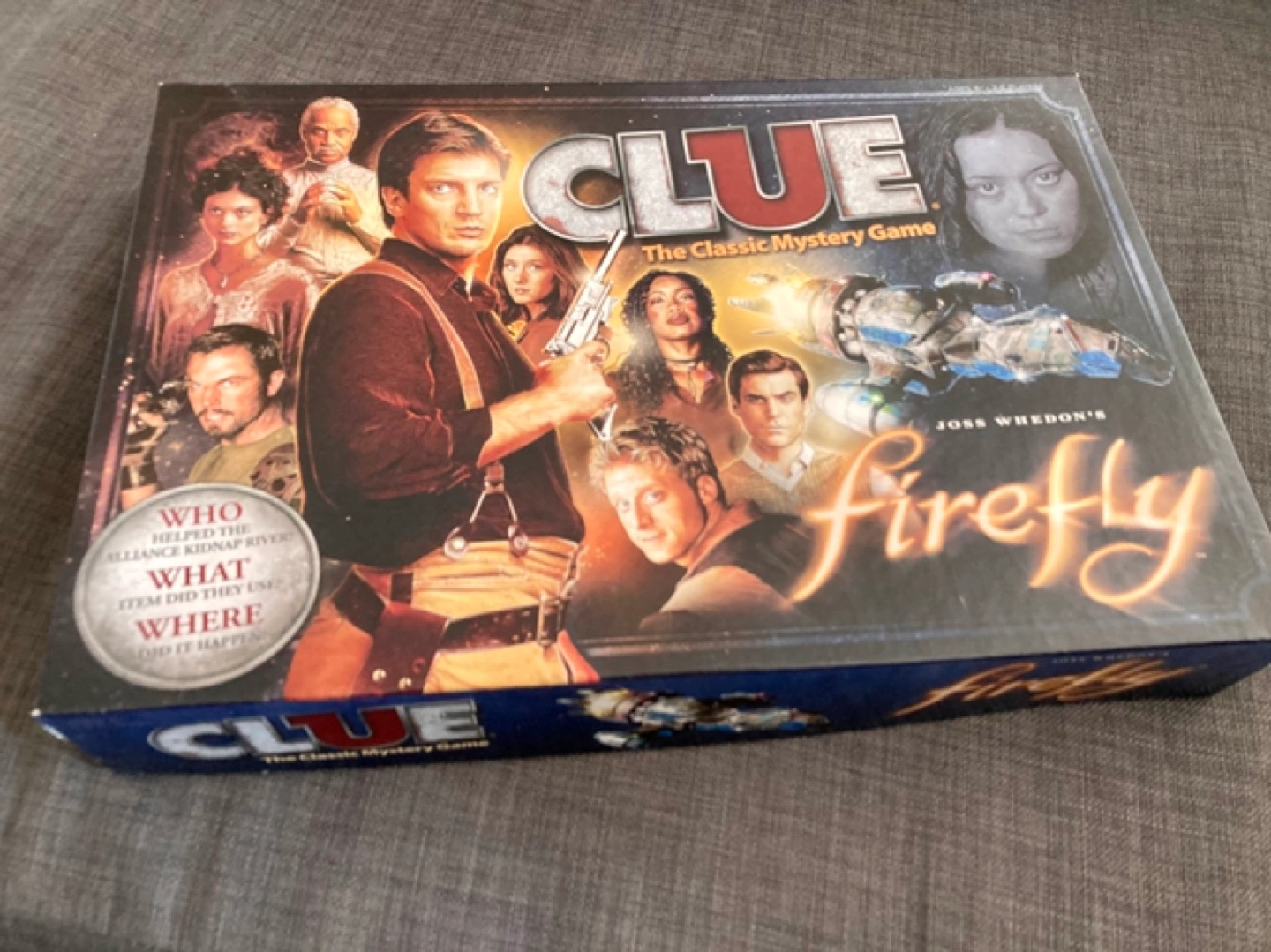 Collector Edition, As new condition, Firefly themed version of the board game Clue. Played once and hasn’t been reached for since.Nothing wrong with it, big Firefly fans, just not a board game household. SFPF home. Pick up from Kingston road and Dundas street east (Beaches) area.