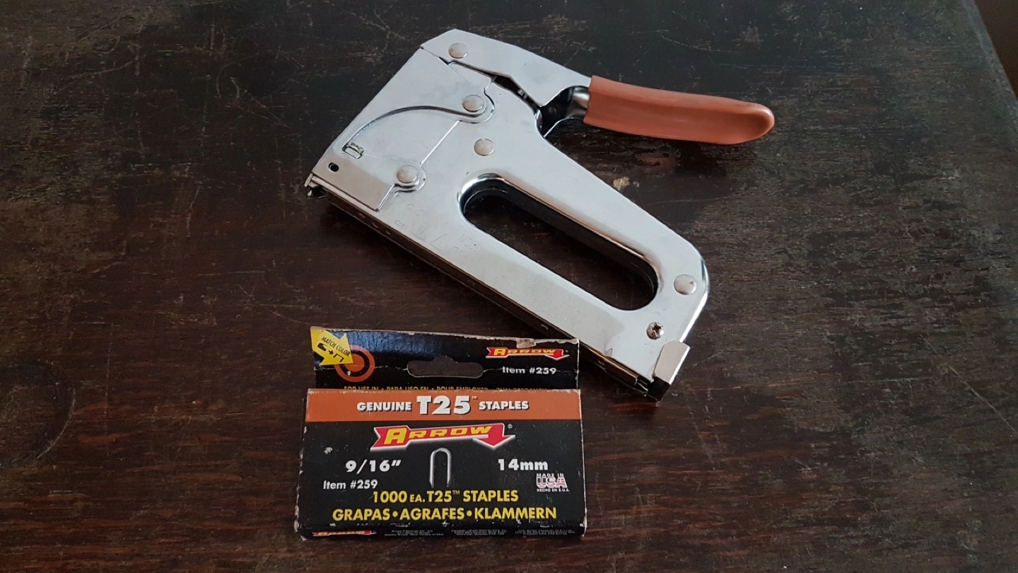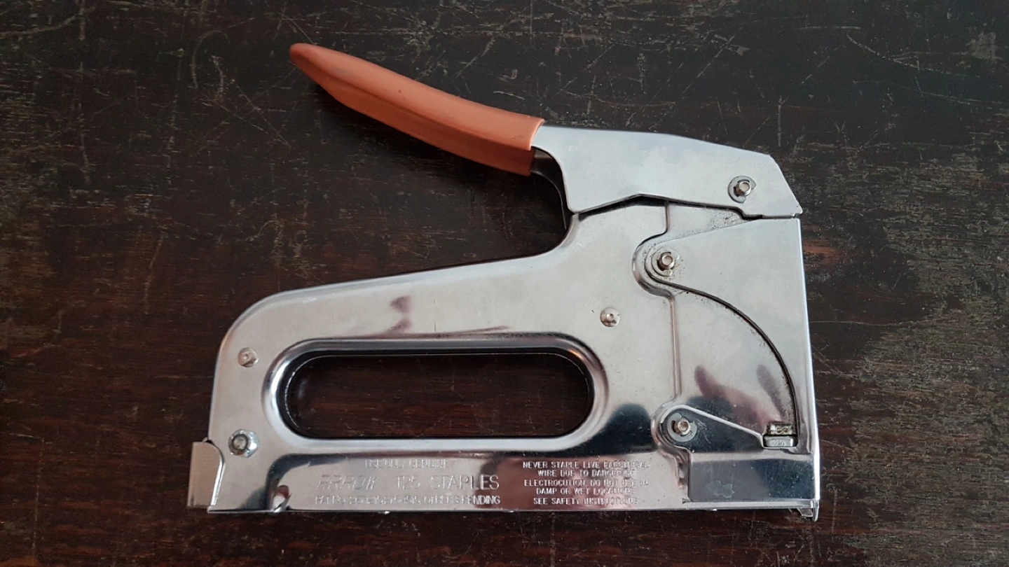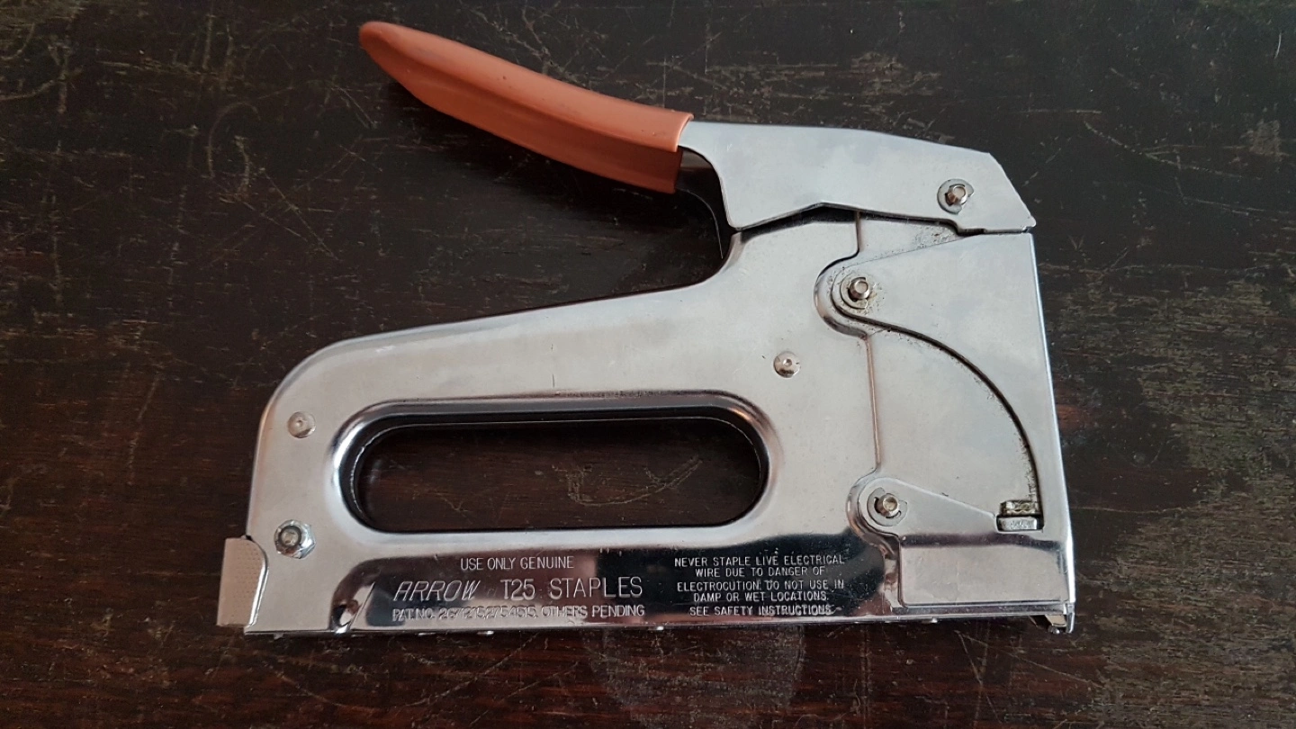 Heavy-duty staple gun. Chrome finish. Uses Arrow T25 staples. Orange handle. Vintage condition. Good condition and includes T25 staples.