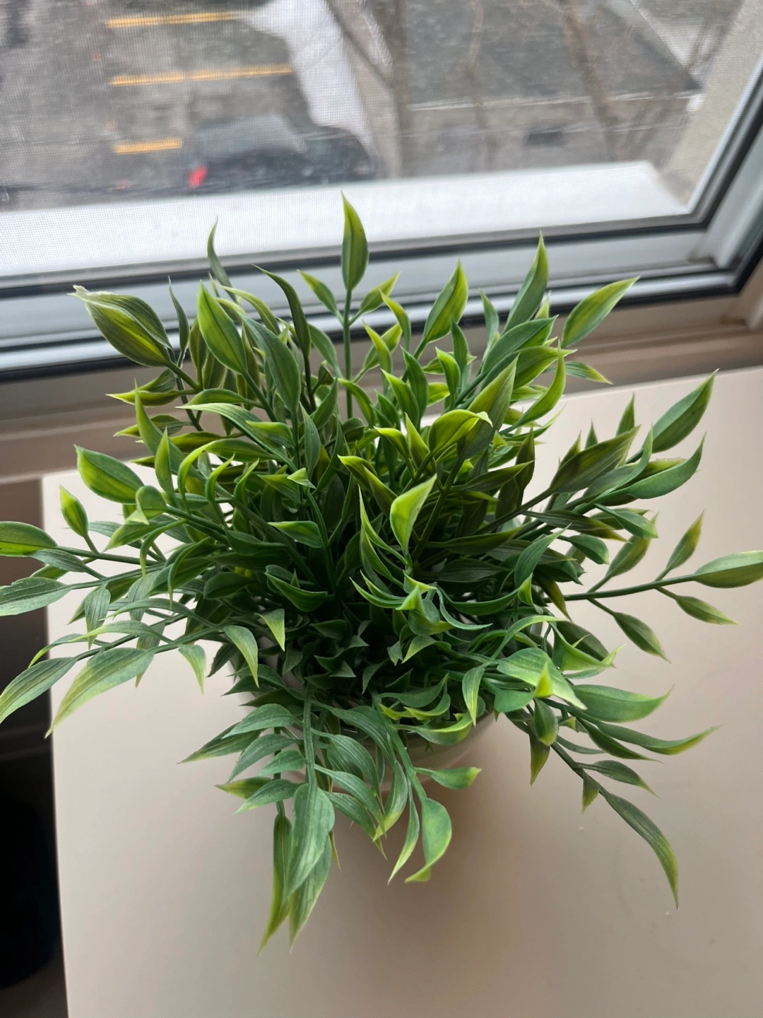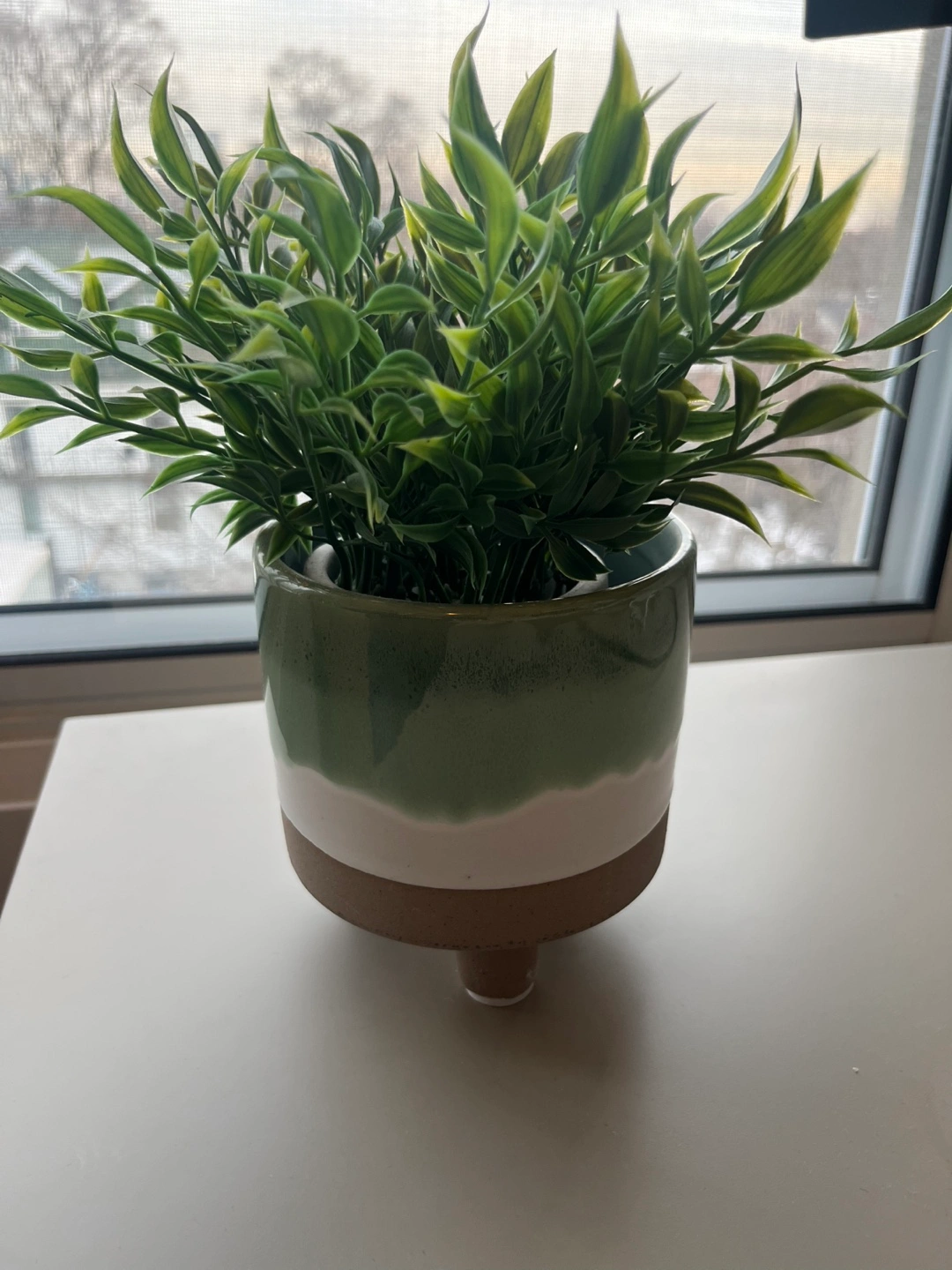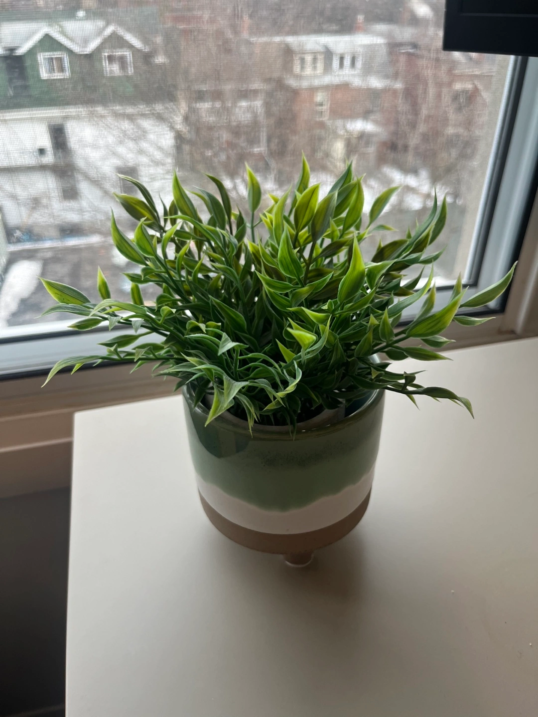 Artificial greenery in a ceramic pot. Green, white and beige colours. Small size, perfect for a desk or shelf. Delivery available, let me know if there are any questions. Please feel free to check out my other listings, happy to do a deal on multiple items! Pickup at Bathurst/Dupont