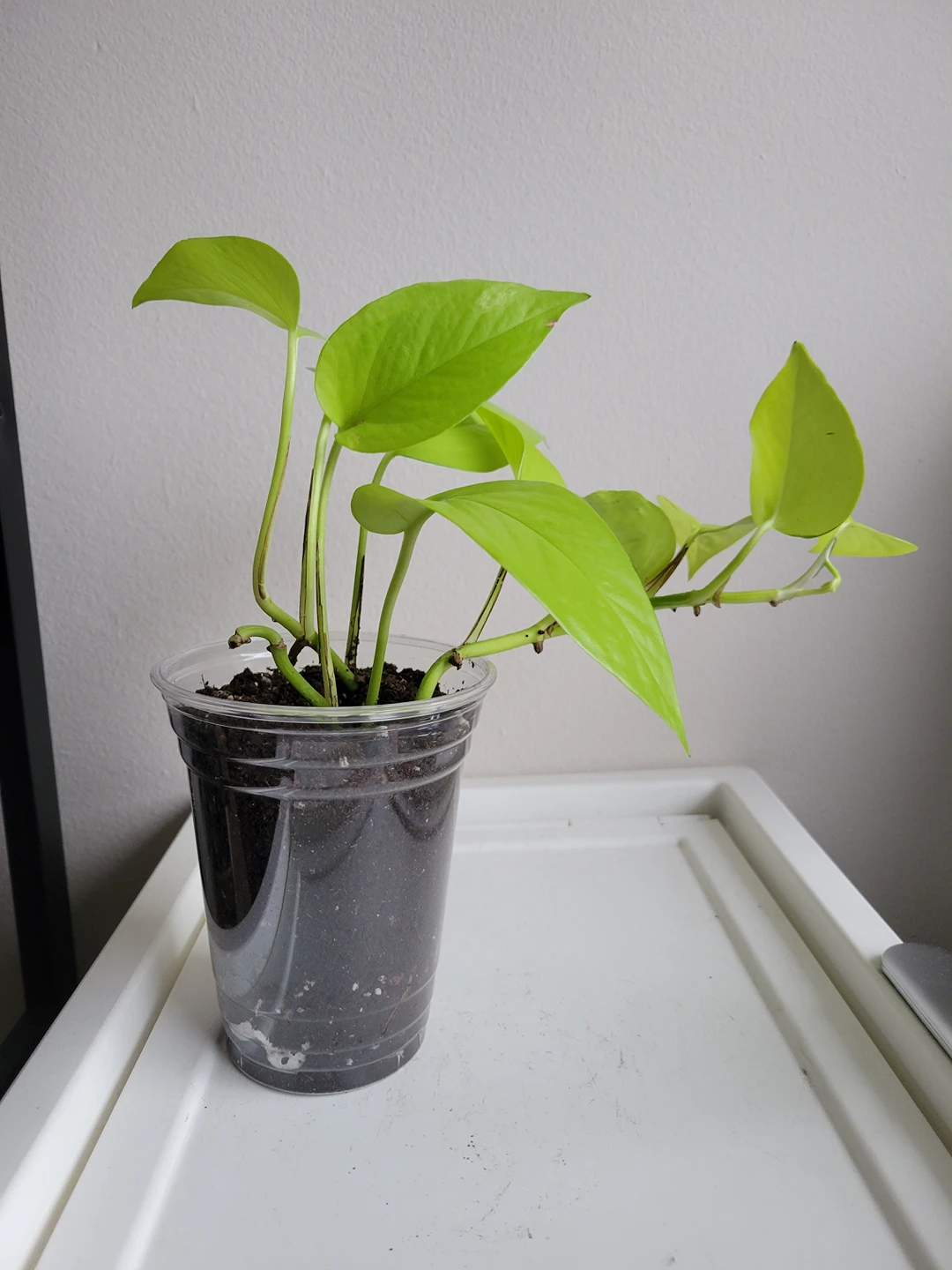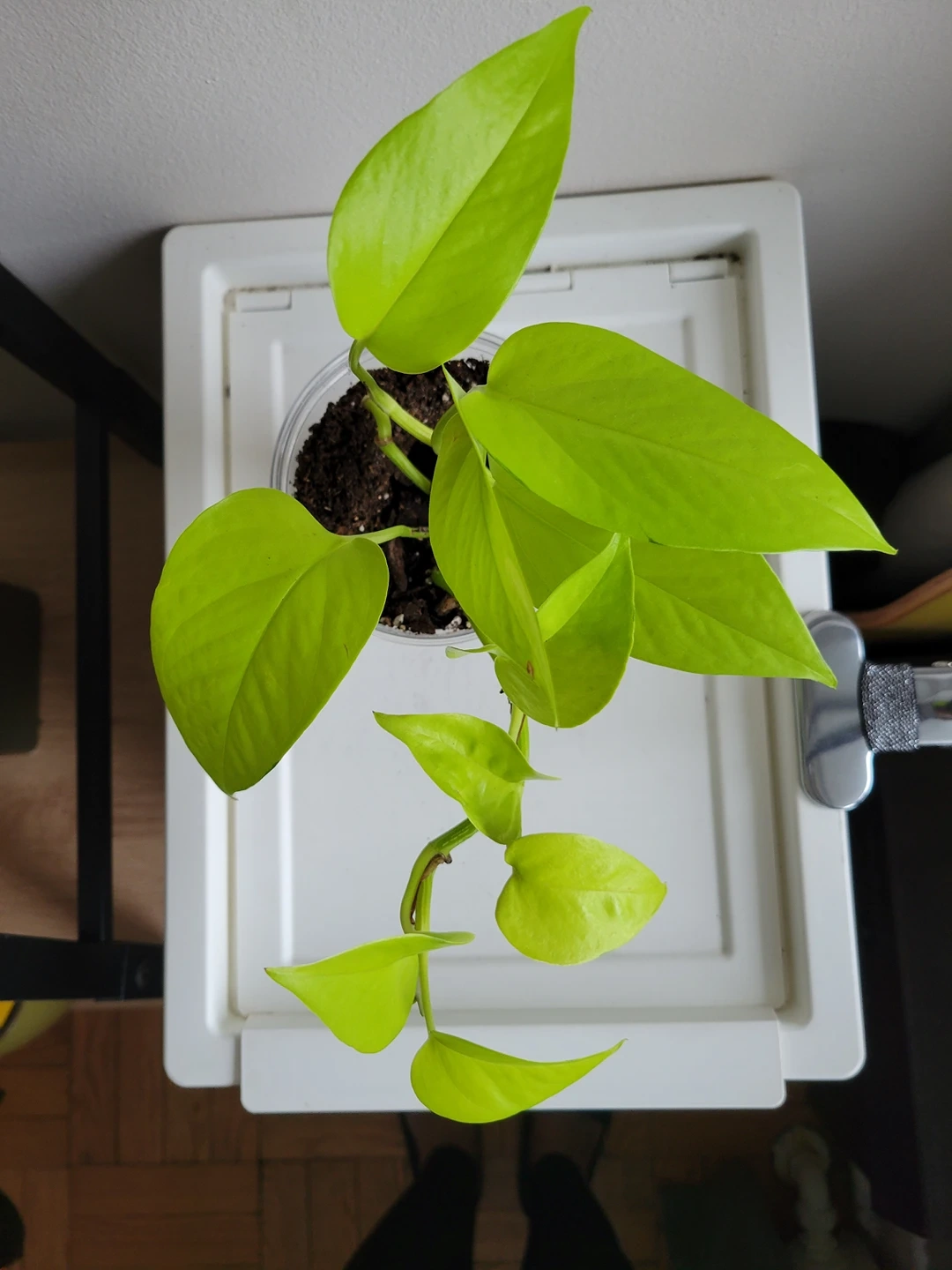 well established health neon pothos. 4 inches wide and 5 inches tall