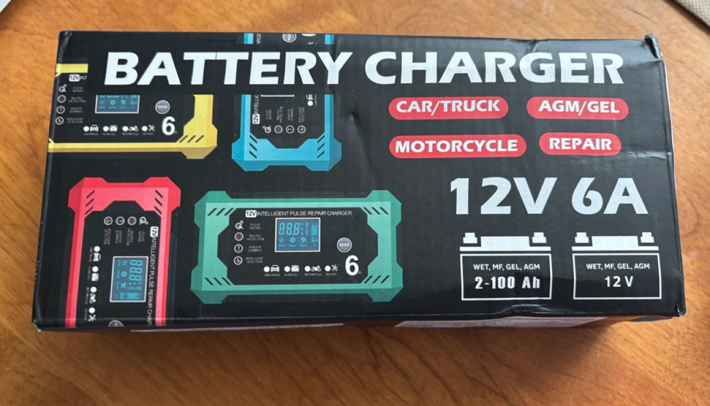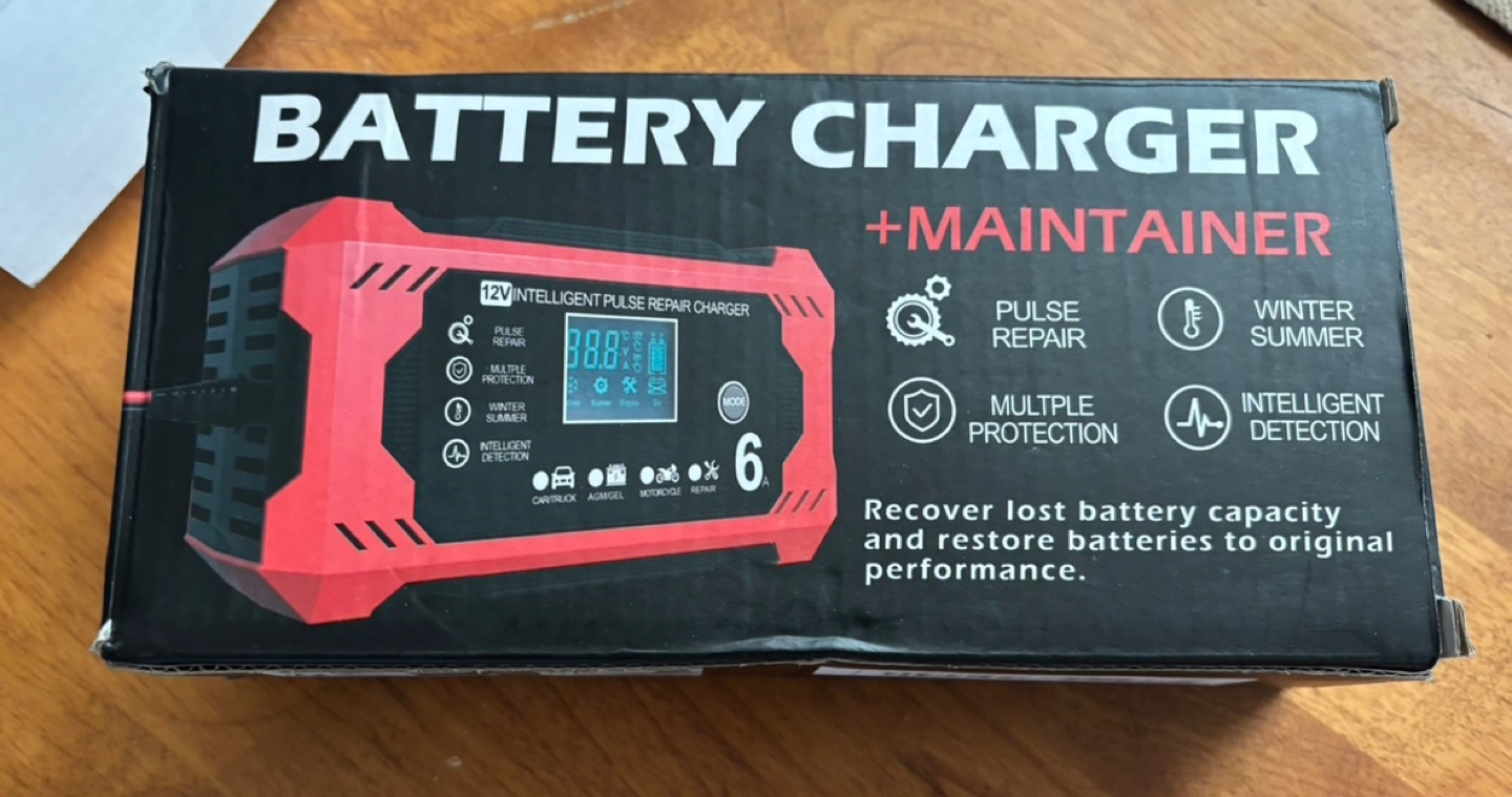 12V 6A battery charger and maintainer. Recovers lost battery capacity. Restores batteries to original performance. Suitable for cars, trucks, and motorcycles. Works with various battery types including wet, MF, Gel, and AGM. Charges batteries ranging from 2-100Ah. Only $30