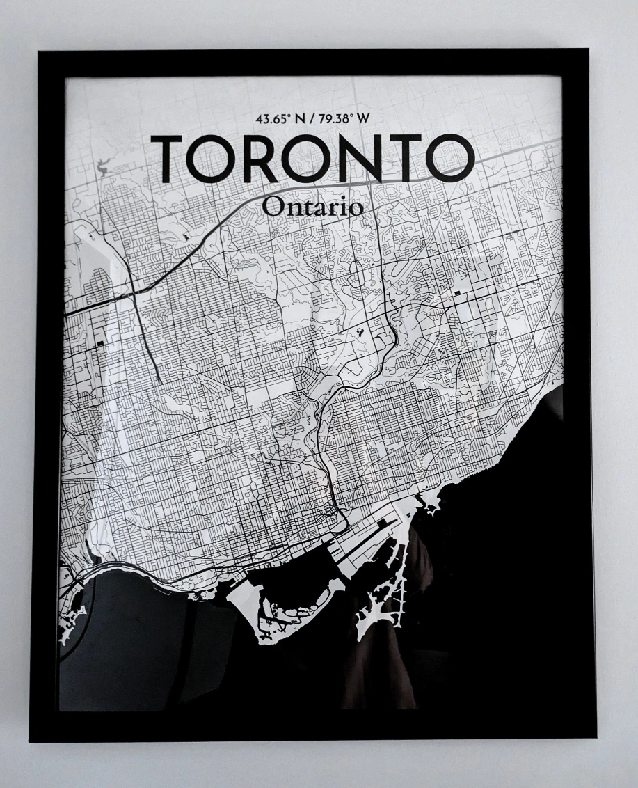 Black and white print of Toronto. Includes black frame. In great condition. 17 3/8" X 21.25" Moving sale - check out my other listings ✨ Pickup at Yonge & Eglinton or downtown on weekdays.