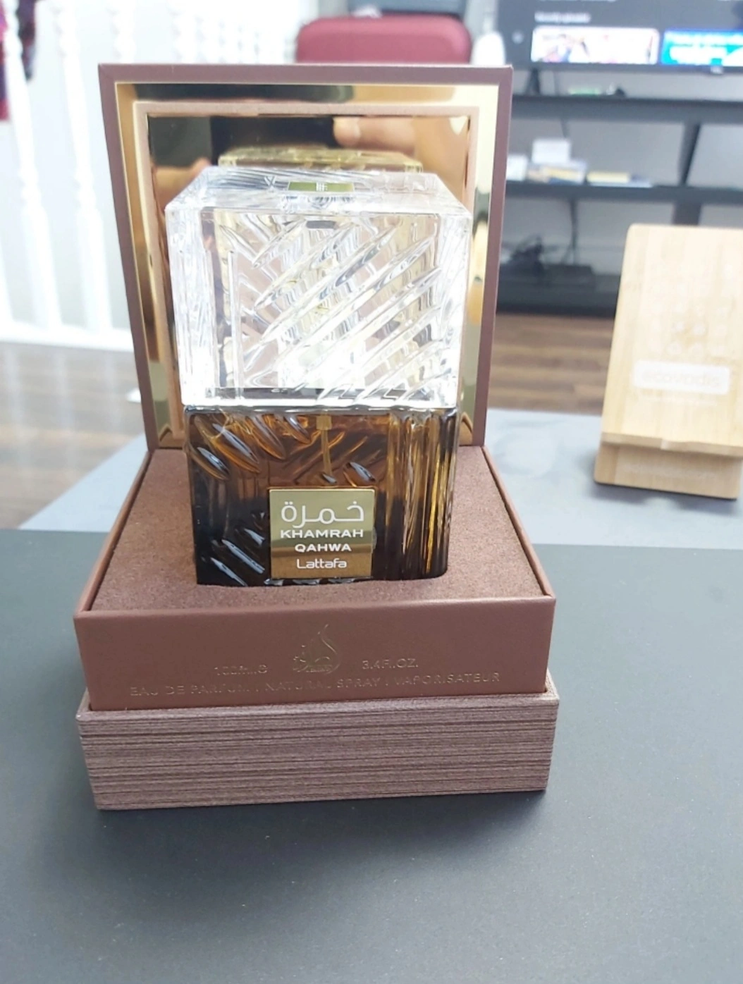 Khamrah Qahwa perfume by Lattafa. 100 ml, used some sprays only. Reason to sell : Downsizing my perfume collection. Open for considerable offers.