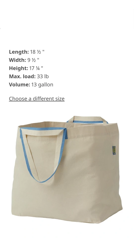 Brand New! Similar to their big blue plastic bags, just made out of 100% cotton. Great for laundry, clothes or organization. Has both short and long handles. 📷 See all 6 photos for all the details & measurements. Not sold in Canada.