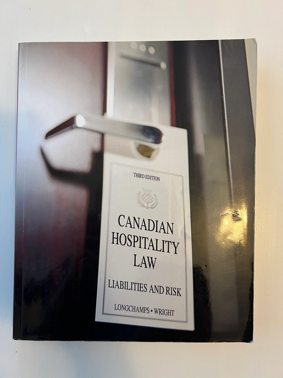 Bradley Wright, Don Longchamps Previously published by Nelson. Canadian Hospitality Law is a comprehensive survey of the law as it relates to the hospitality and tourism industries. The book is the only one of its kind and is considered to be the standard Canadian resource for the associated course. The book is recognized for emphasizing the necessity of sound management principles and preventative tactics for the successful day-today operation of a hospitality or tourism business.