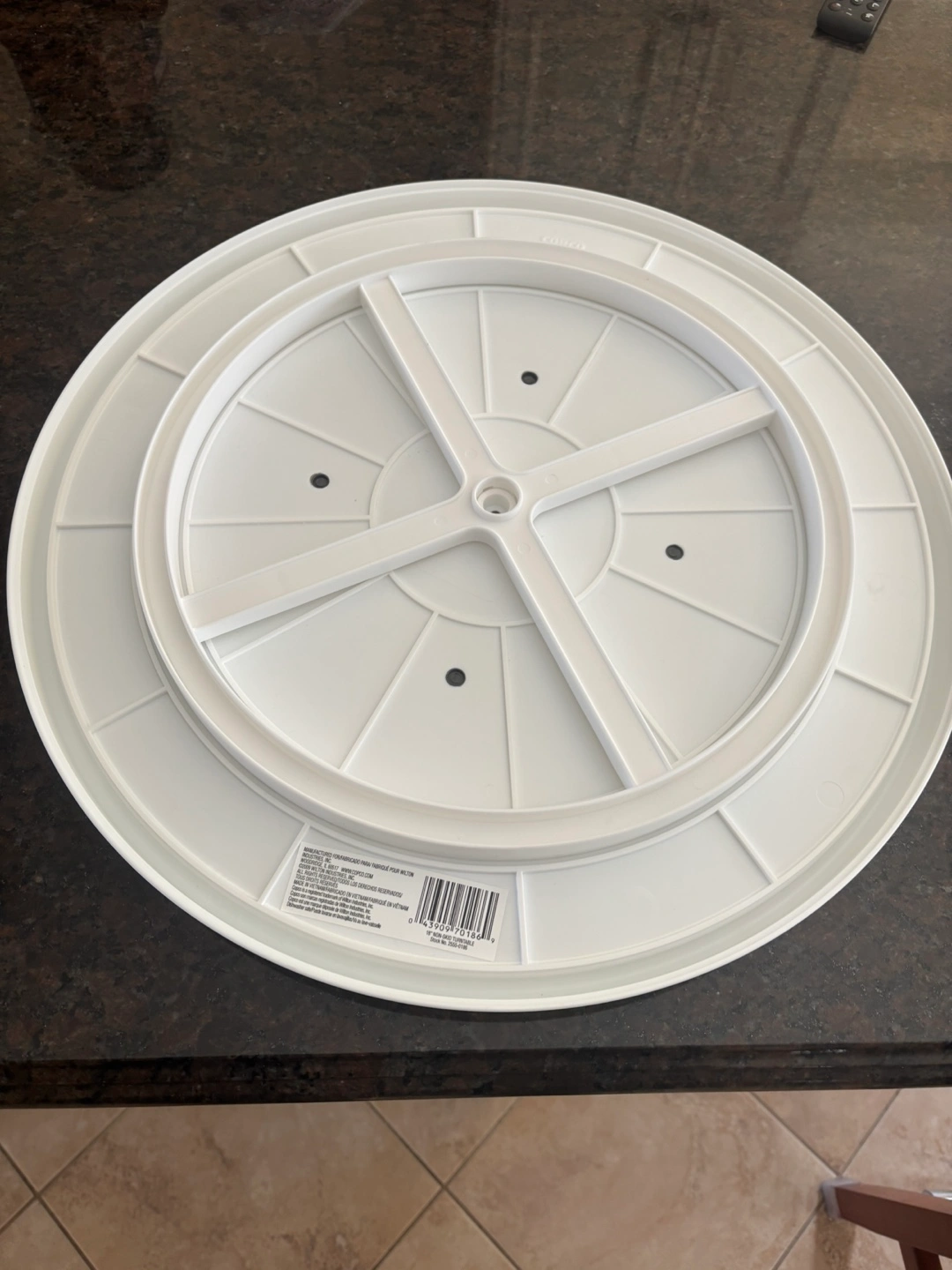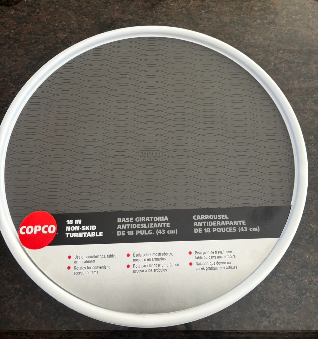 New 18”(43cm)lazy susan turnstile by Copco. Has a grey rubber bottom so dishes don’t slip. Durable white plastic with raised rim. Great for serving dishes while entertaining. PU 2 km N of Hwy 401 & Weston Rd(Weston & Sheppard) Toronto No holds. Cash only.