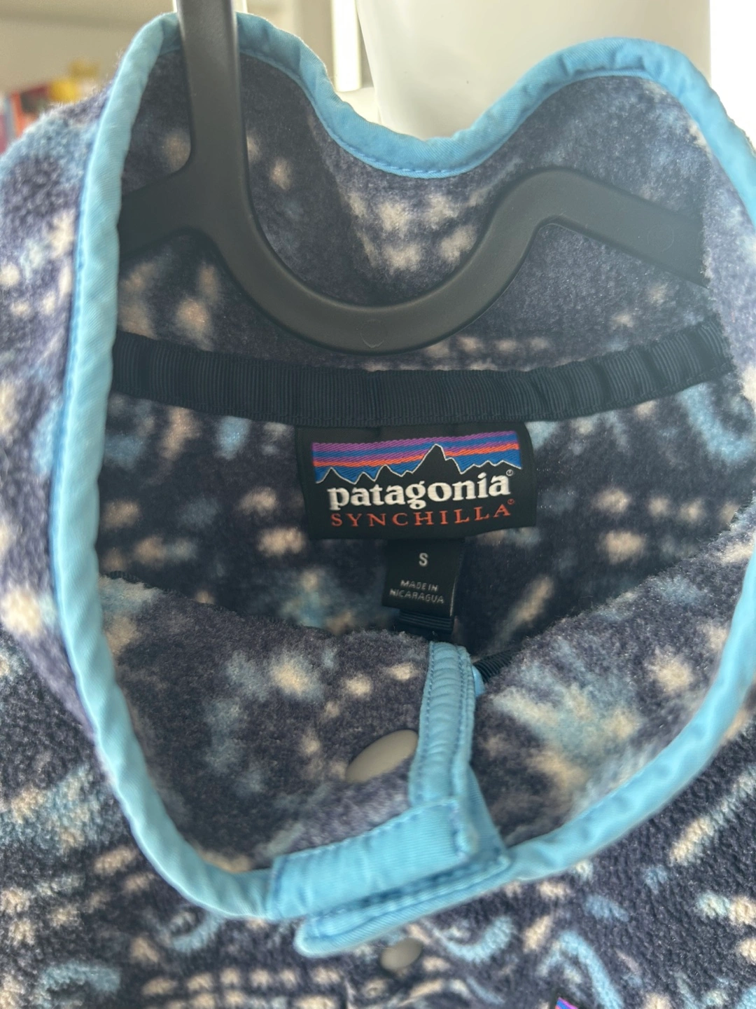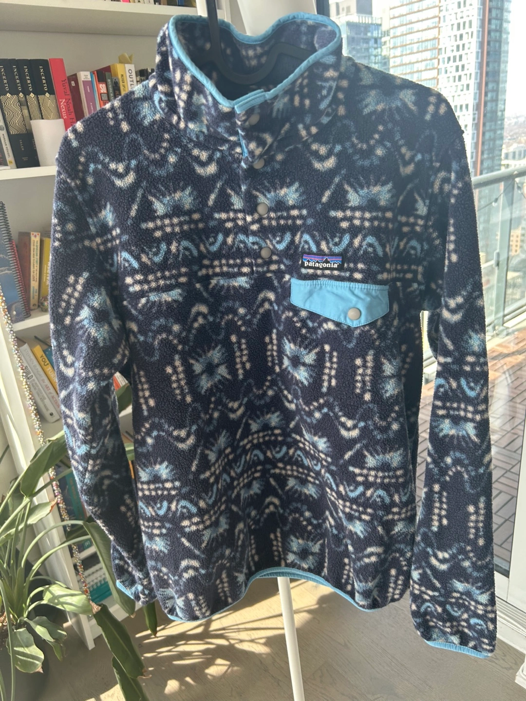 Women's Patagonia Synchilla fleece pullover. Size small. Blue and white pattern. Only worn a few times.