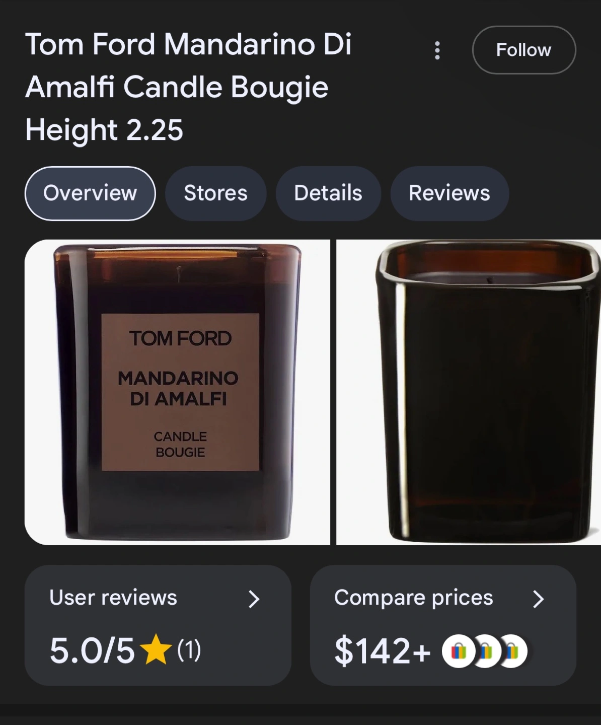 ➡️ slightly used Tom Ford mandarino di amalfi candle ✨ Received this as a gift, I used this candle only once as you can see in the photo. Unfortunately my mom was allergic to the scent. ❗️$60 (retails for around $140 - $185)
