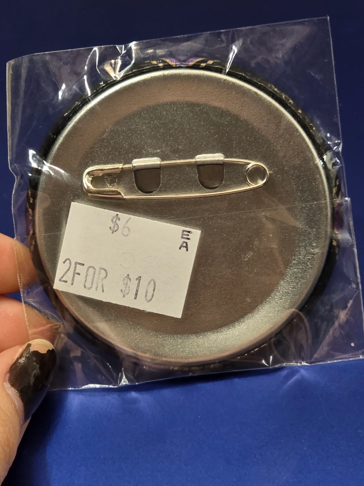Cute collectible button pin. Features colourful anime-style artwork. Safety pin back. New condition. Price negotiable & open to trades.