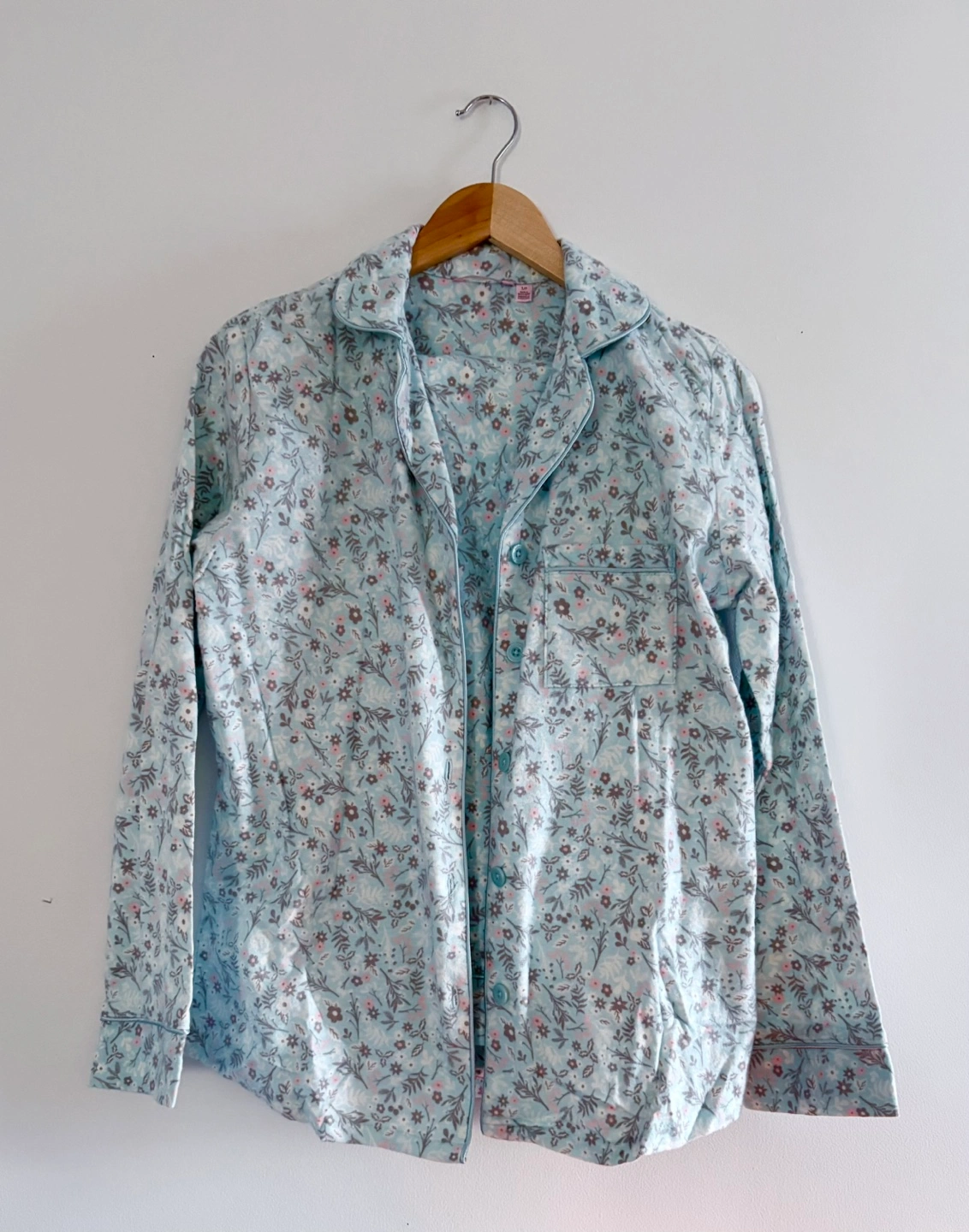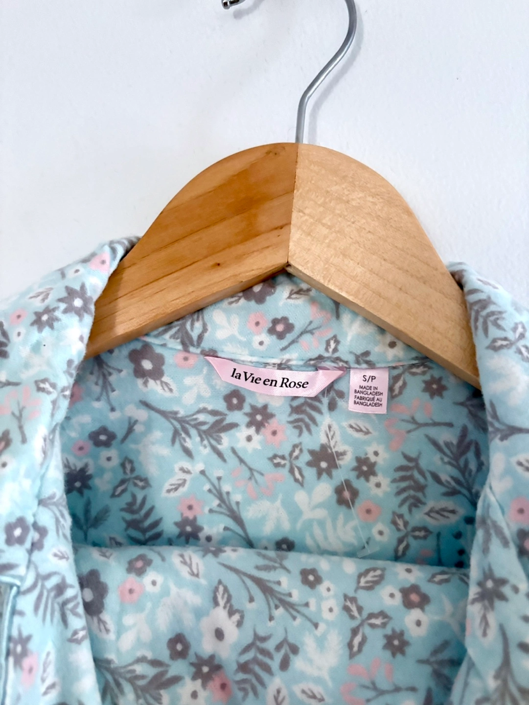 Women's pajama set New without tag Never worn just tried once Size small. Light blue floral print. 100% cotton. Long sleeves, button-up top, and elastic waist bottoms . Drawstrings on pants Super light and comfy Got as a gift for Xmas but doesn’t fit right ‼️Price is final ‼️ Cash only