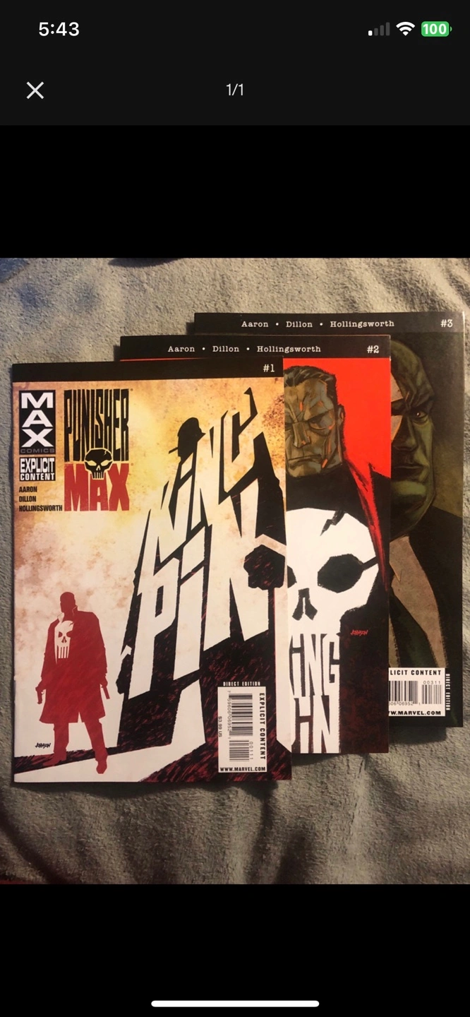 Punisher max 1-3 Jason Aaron, Steve Dillon Never read, no rips or folds Curb side pickup Cash only Buy multiple items for a discount