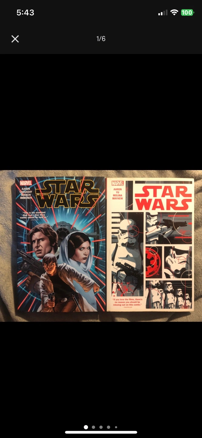 The first two volumes of the Marvel Star Wars comics relaunch. First printing. Includes dust jackets. Jason Aaron. John Cassiday. Leinel Yu. Great condition. Read once. Curb side pickup You pay shipping Buy multiple items for a discount