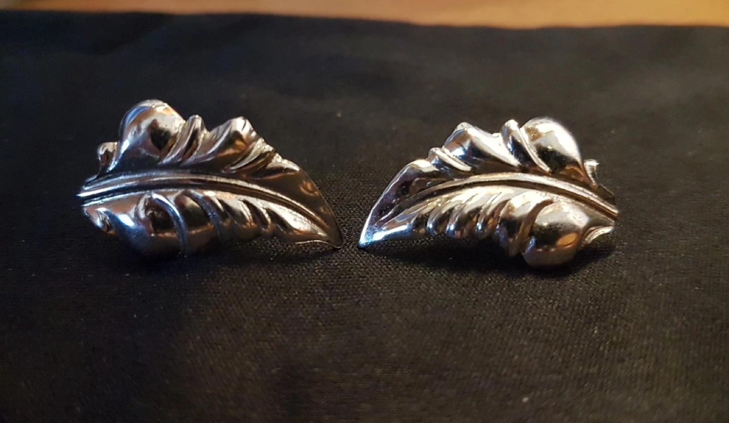 Pair of vintage Silver Leaf earrings. Screw posts. Vintage 1940s, 50s Bond Boyd 925 sterling silver. 1” non pierced /screw post earrings featuring a stylish leaf design. Good condition