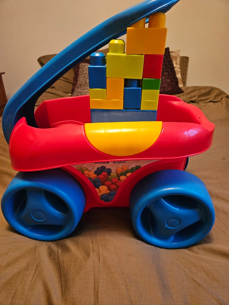 Mega Bloks, First builders wagon; includes bloks. Great for toddlers. $10.⁰⁰ Ph. 204-612-7831
