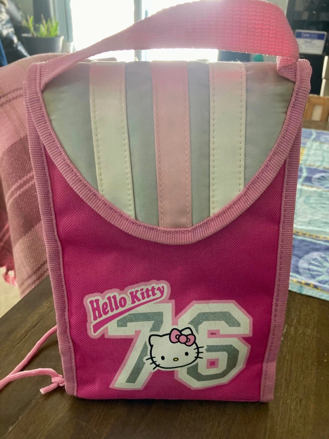 Pink Hello Kitty lunch bag. Features a zipper closure and an insulated interior. Includes a carrying handle and a small zippered pocket. Lunch bag with hidden compartment. Gently used . Washed & in excellent condition. Price $2 FIRM Smoke free💨 & dog 🐶 friendly home 🏡 Pick up only , in Woodstock . First come first served
