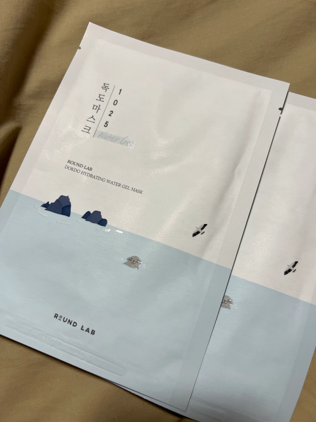 Two individually packaged hydrating water gel masks. Dokdo design. Great for moisturizing skin.
