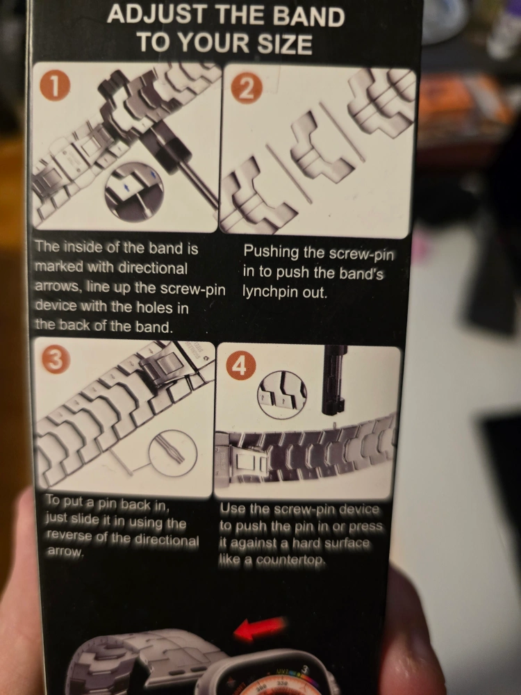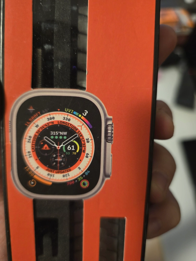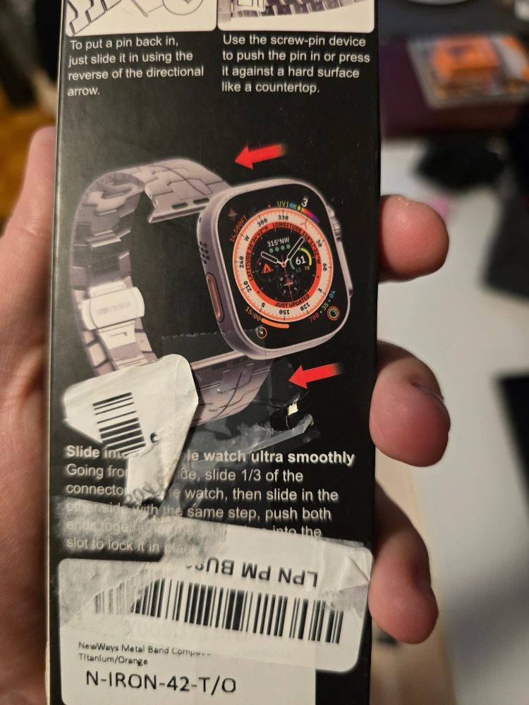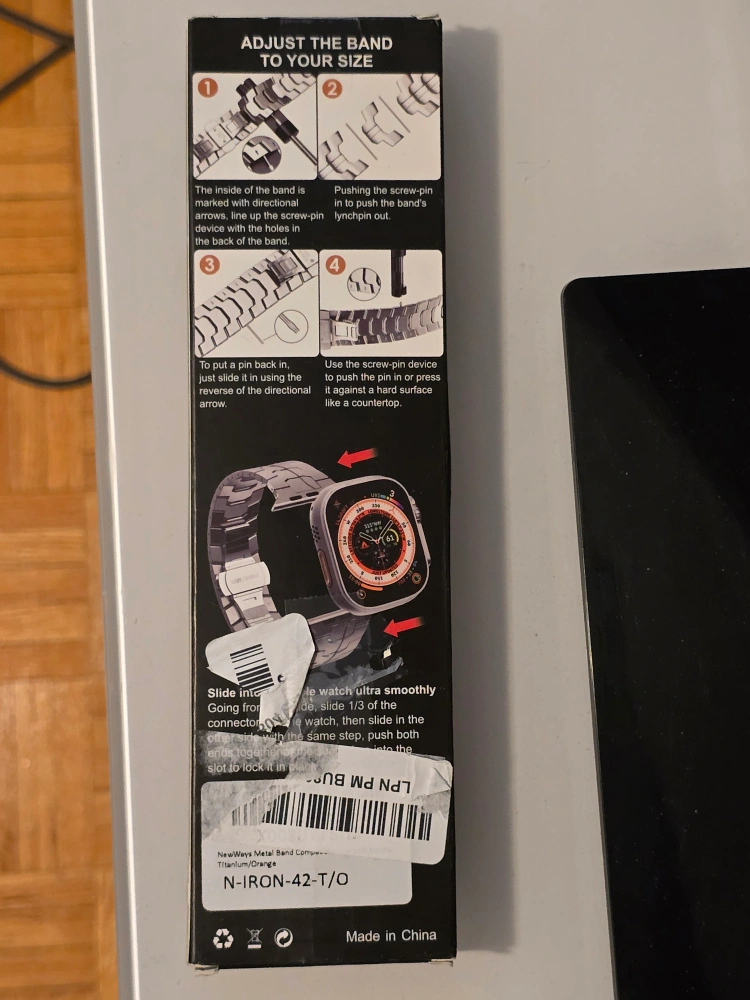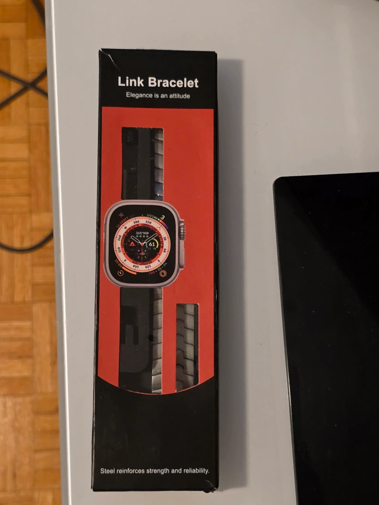 New Apple Watch link bracelet. Titanium and orange colour. Steel construction. Easy to adjust. Includes instructions.