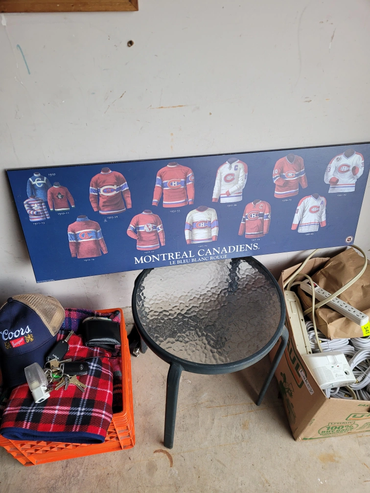 Vintage Montreal Canadiens poster showcasing team jerseys from various years. Great for hockey fans or collectors. Includes years of jerseys displayed.